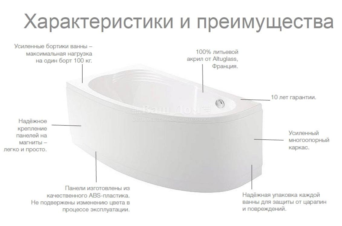 Ванна акриловая неглубокая
