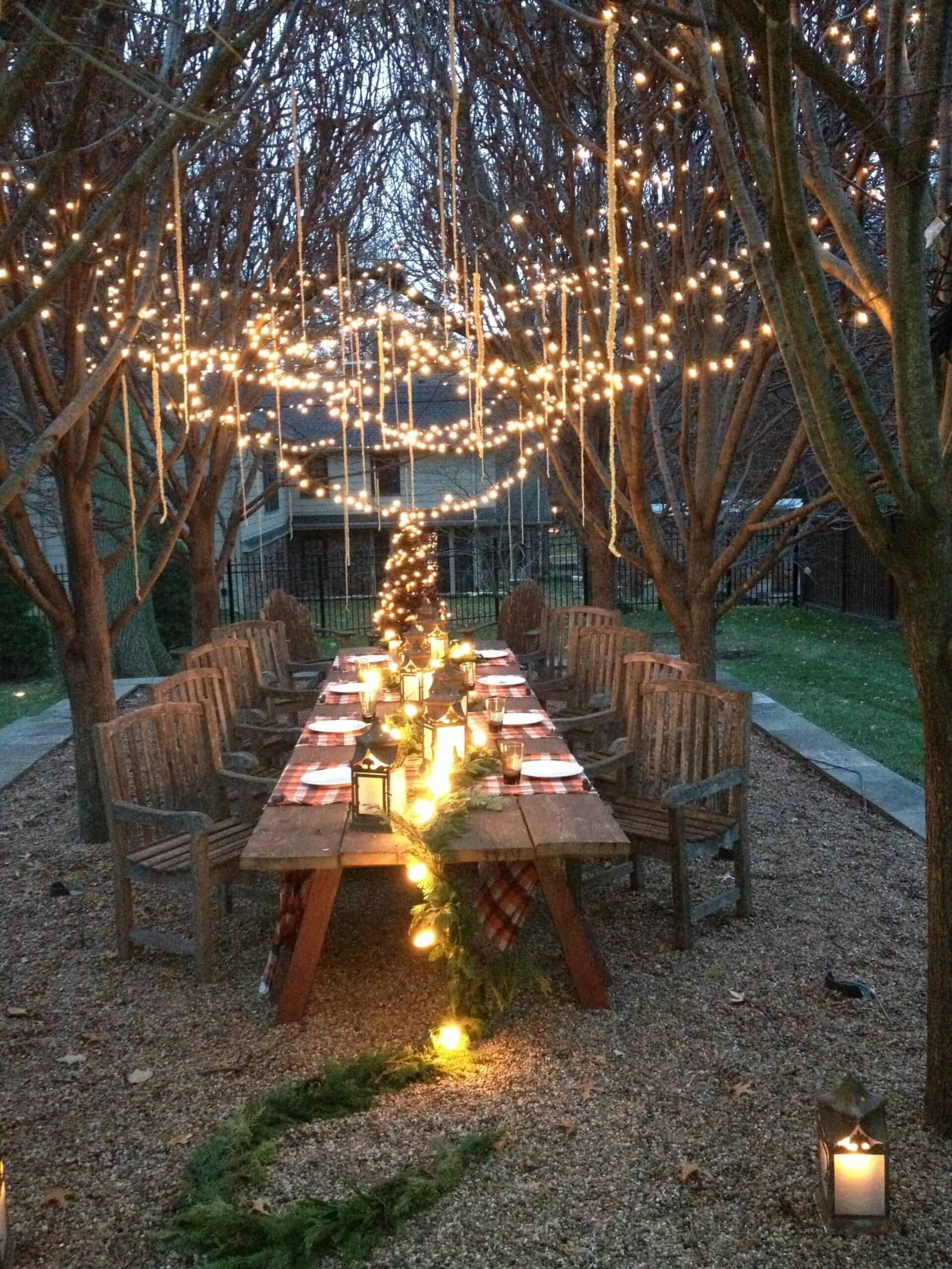Украшение двора гирляндами