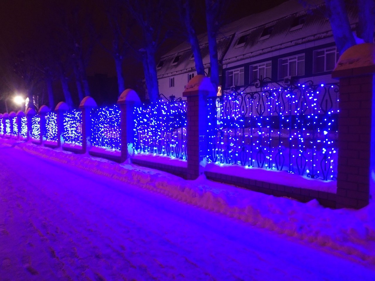 Украшение забора гирляндами