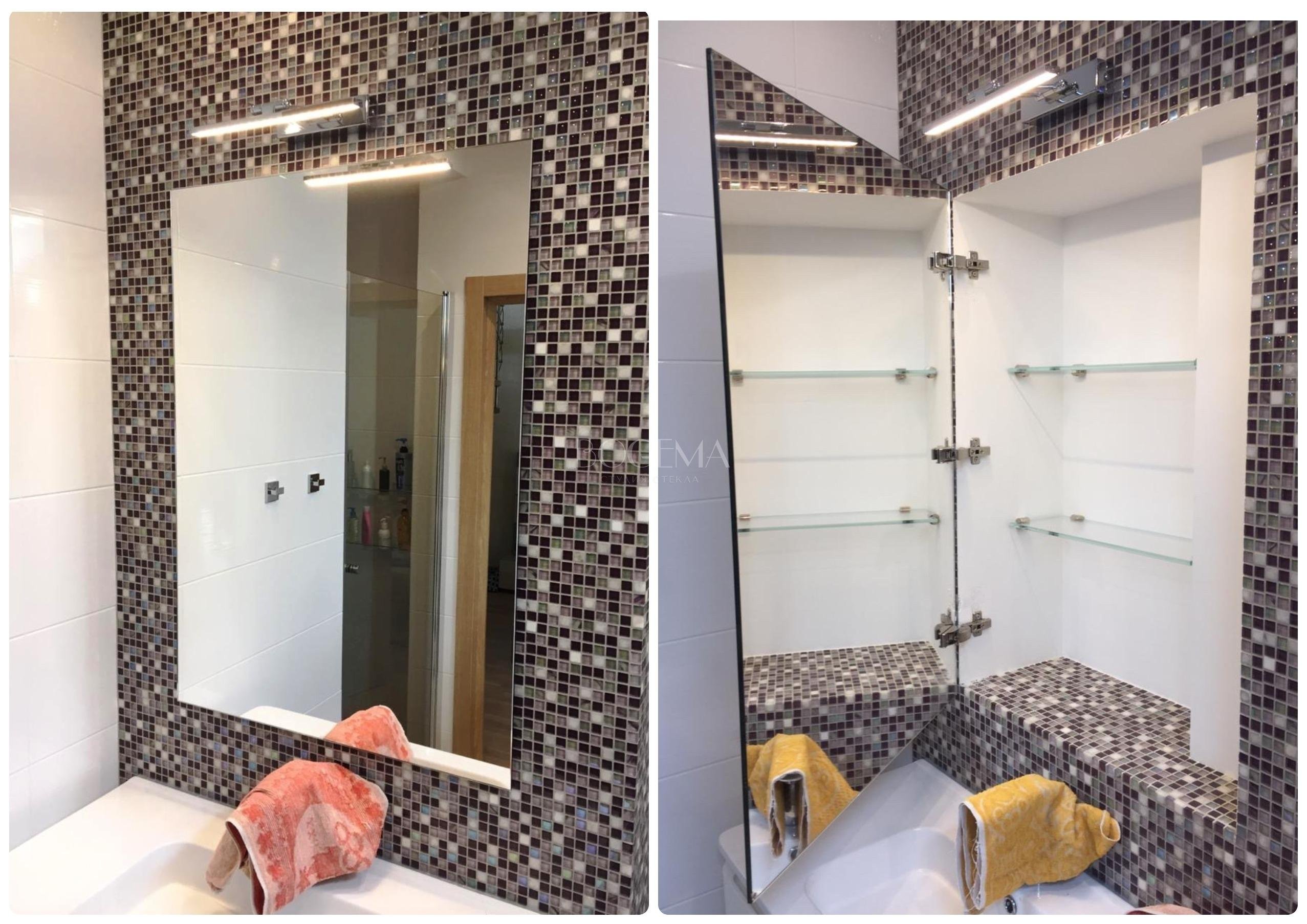 Зеркальная дверца в нишу в ванную