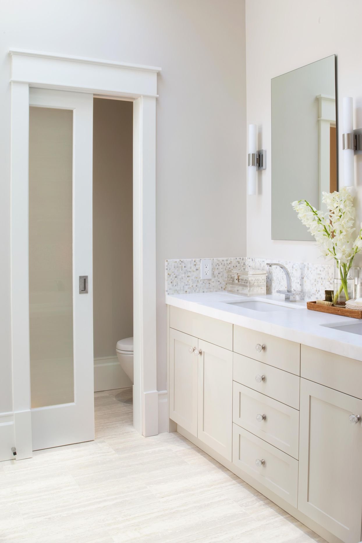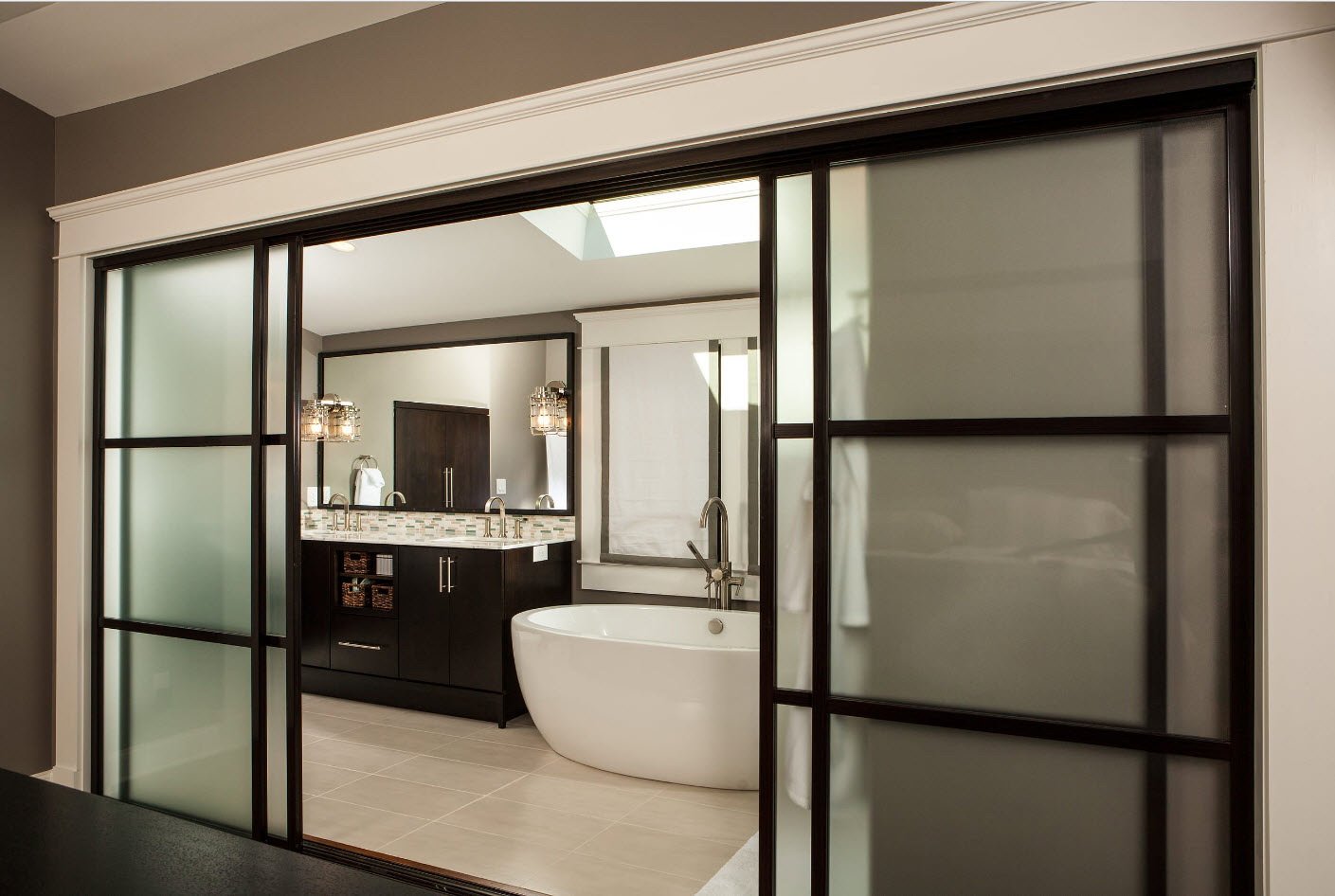 Раздвижная дверь в ванную комнату с матовым стеклом