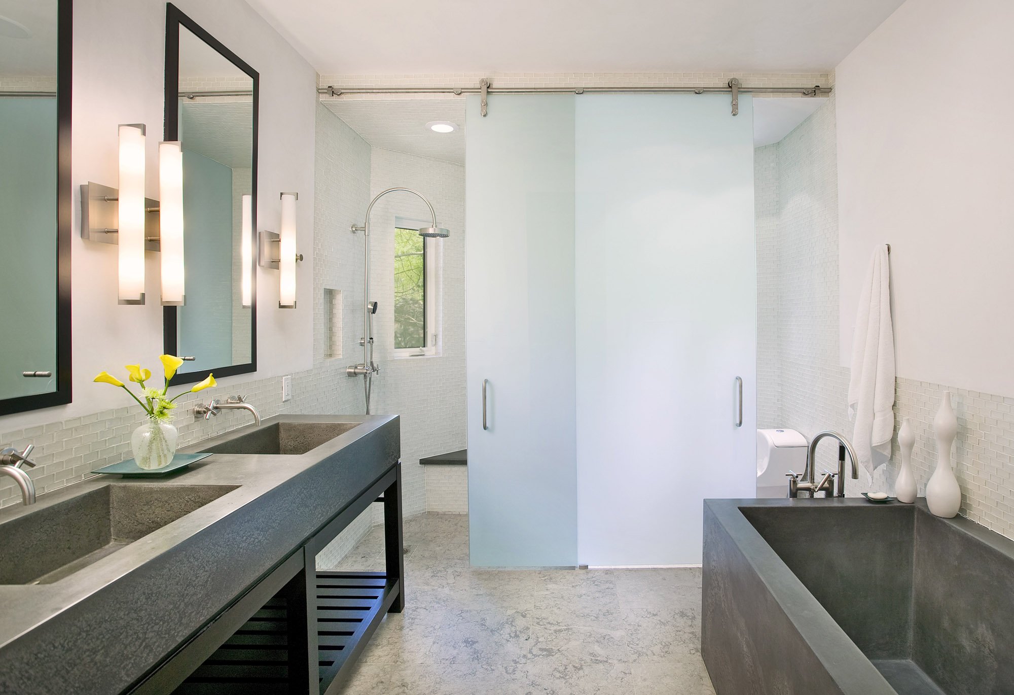 Ванная комната со стеклянной стеной