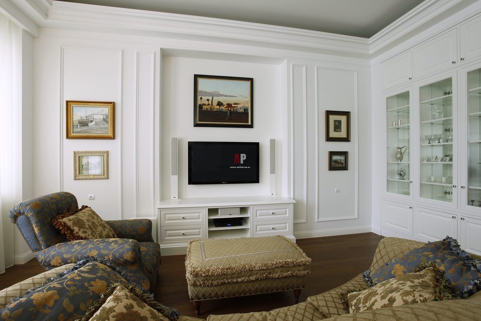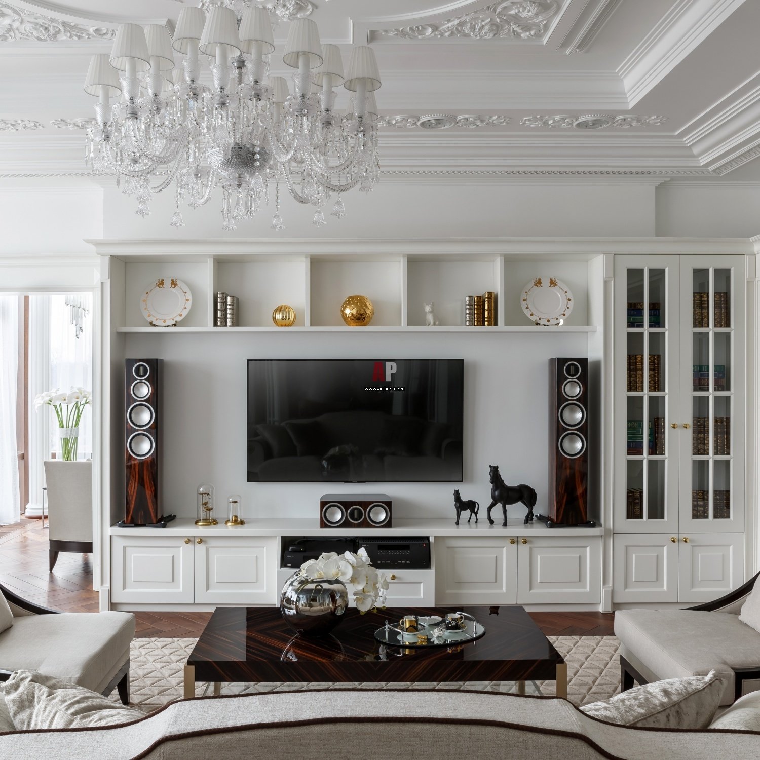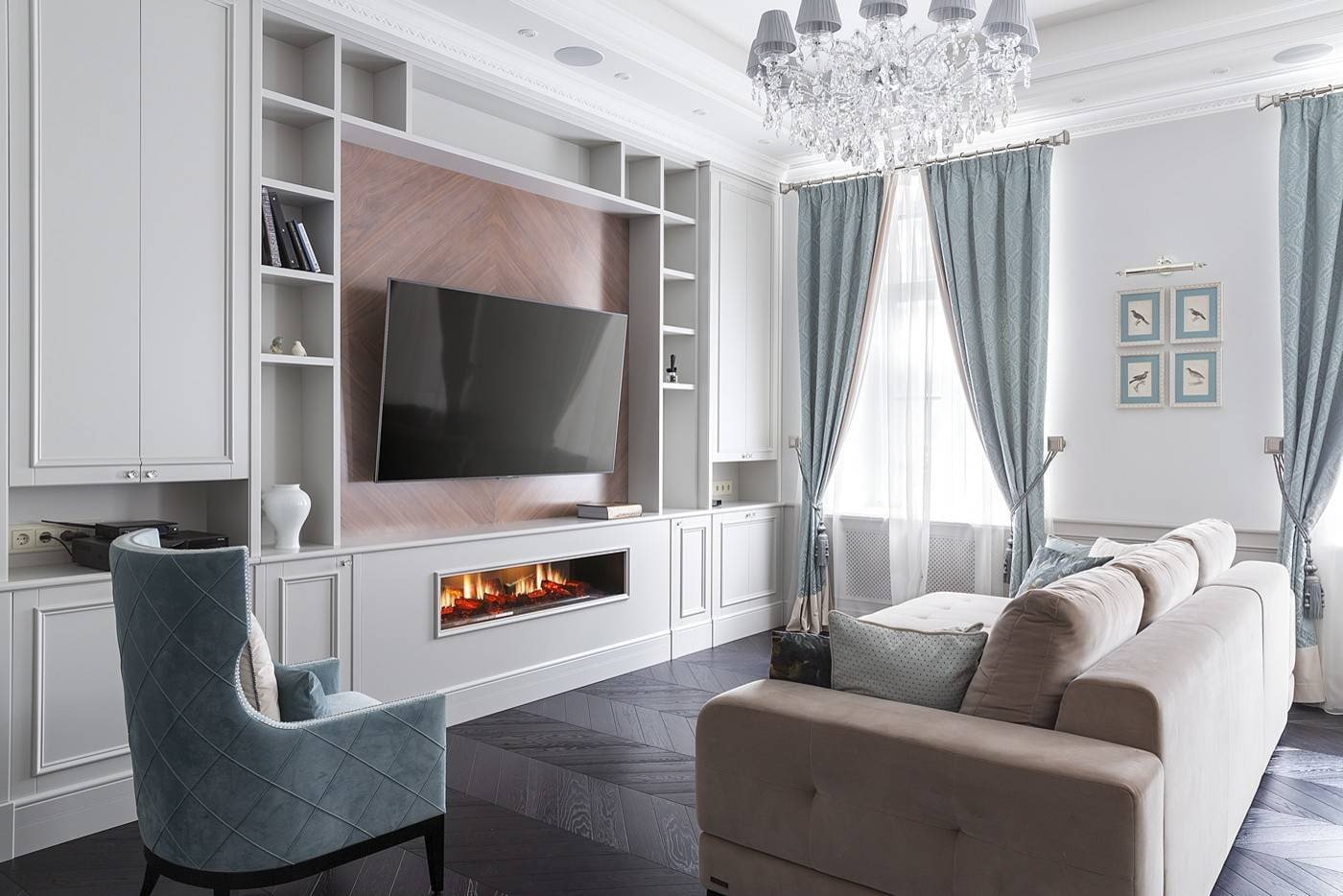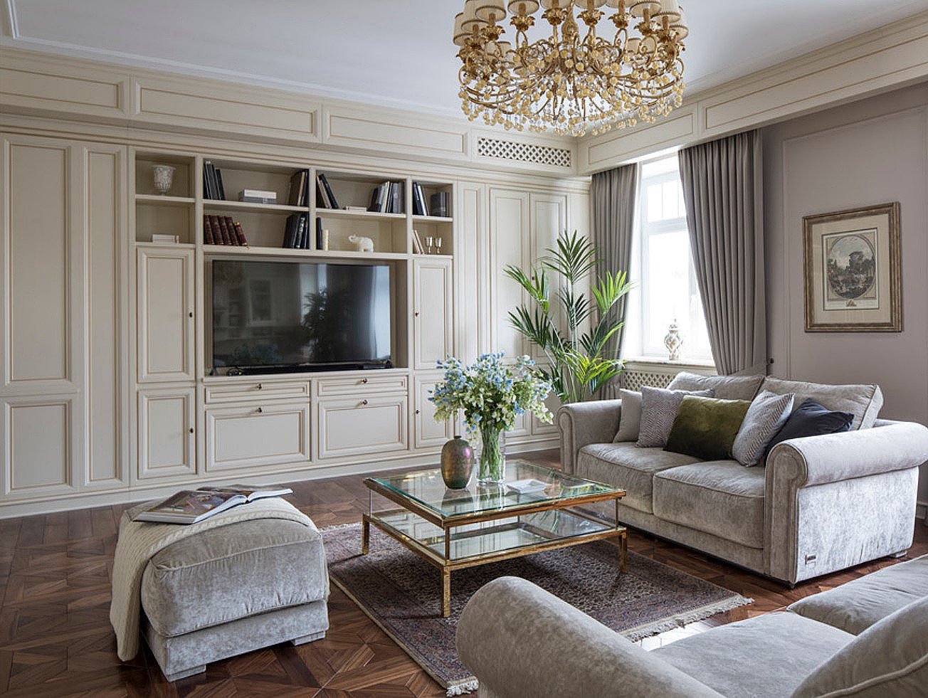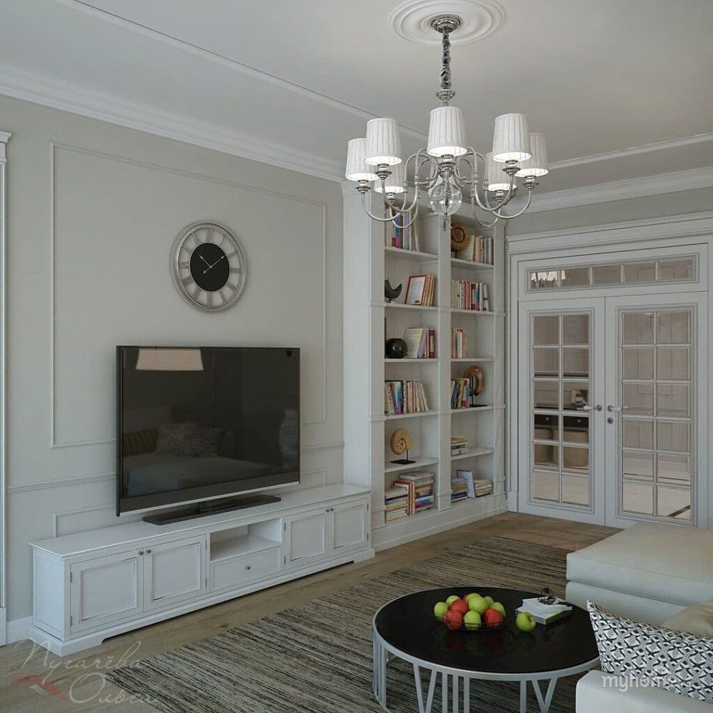 Зона ТВ В гостиной в неоклассическом стиле
