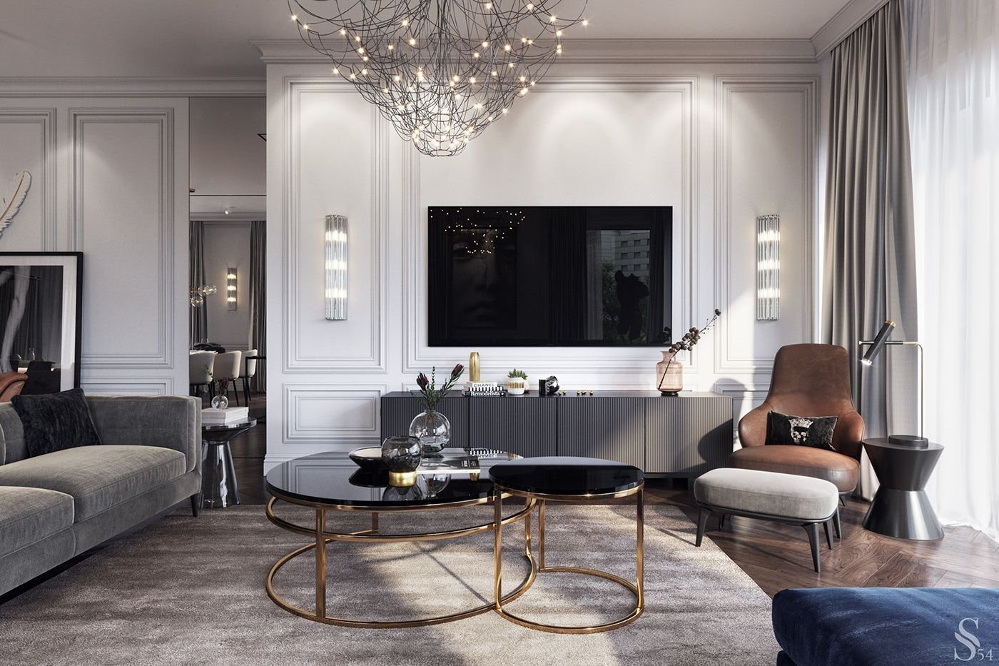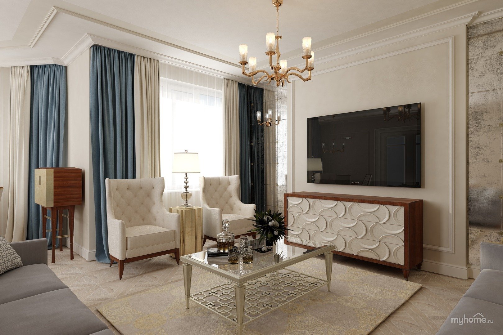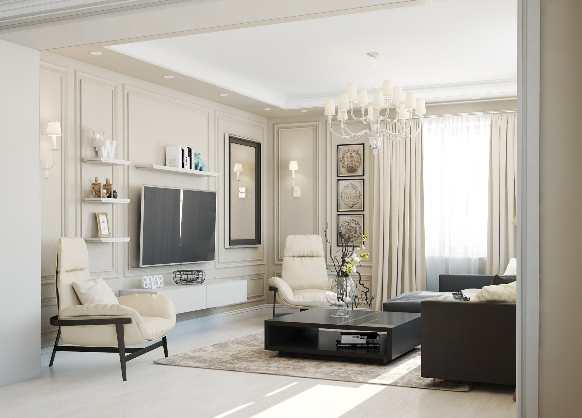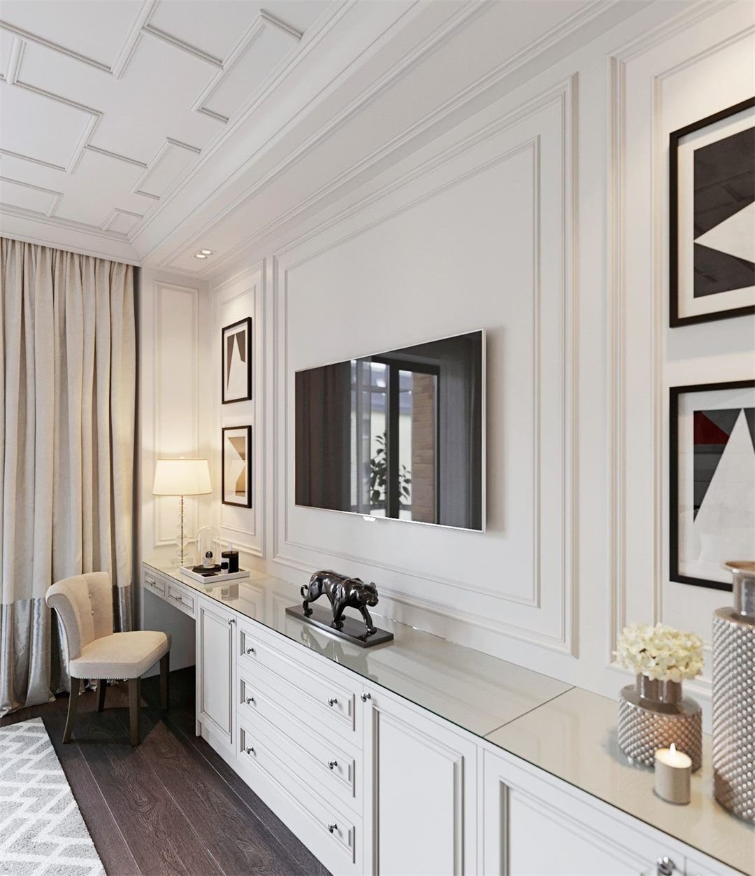 Зона ТВ В гостиной в неоклассическом стиле