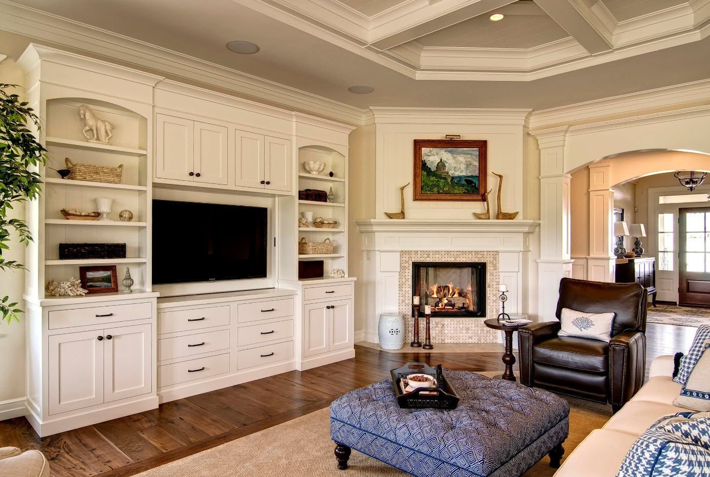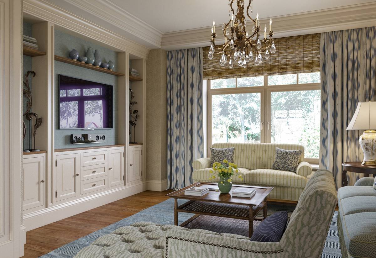 ТВ зона в гостиной в классическом стиле