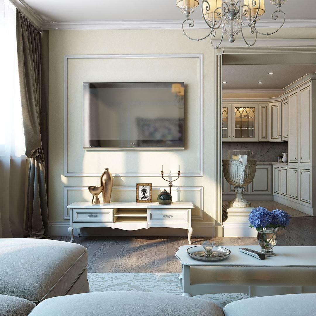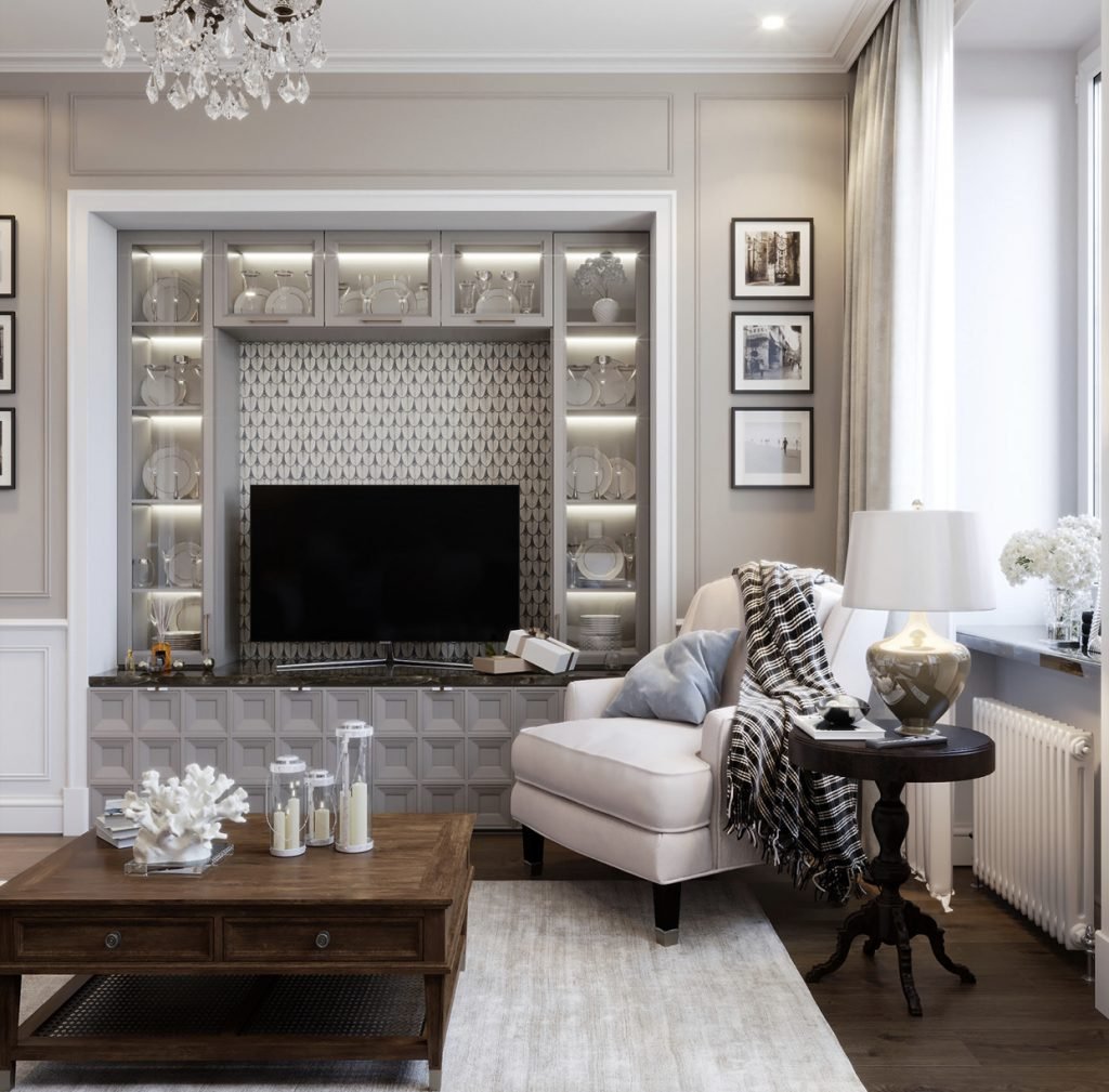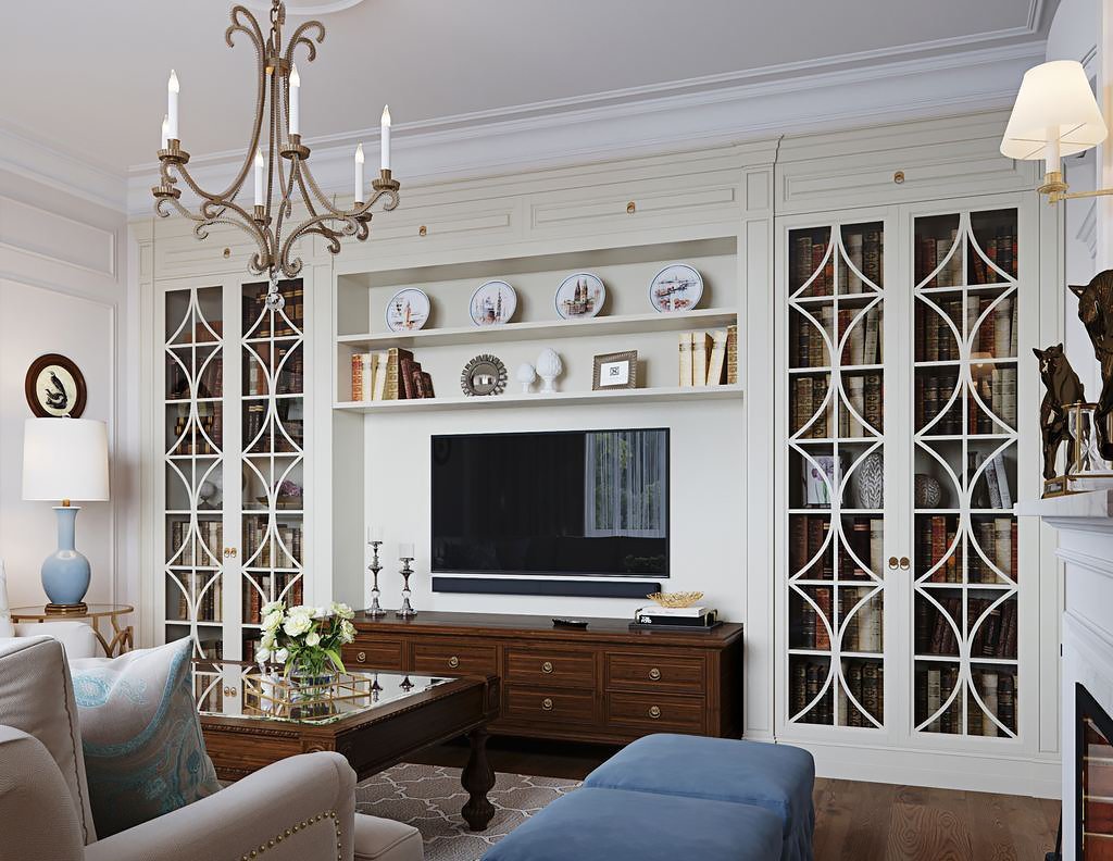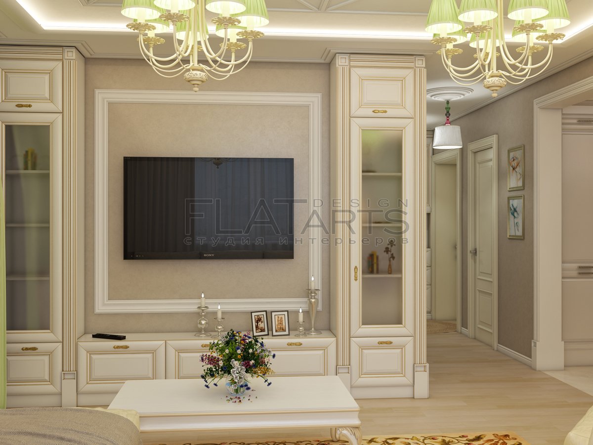 Зона телевизора в гостиной Неоклассика