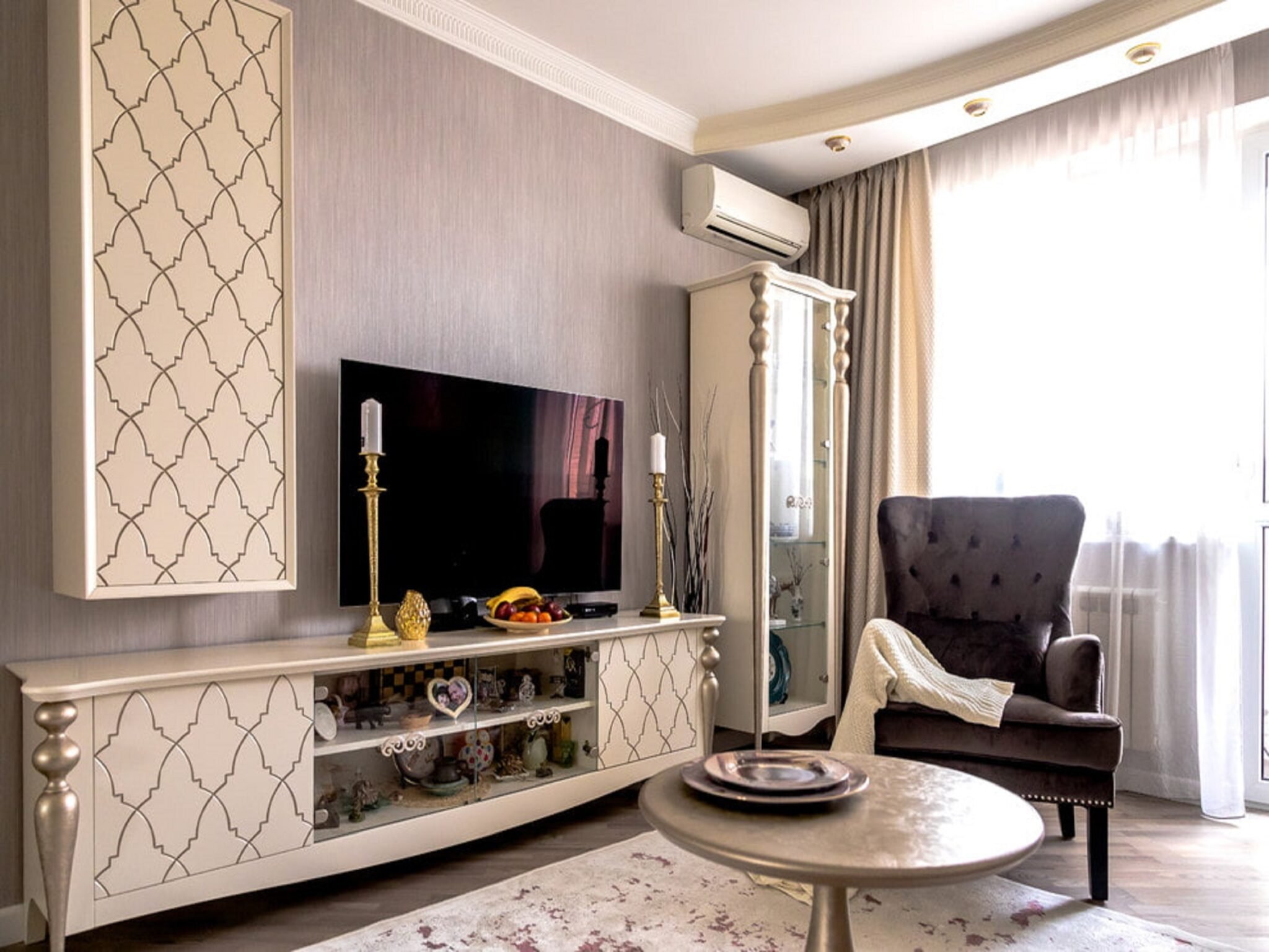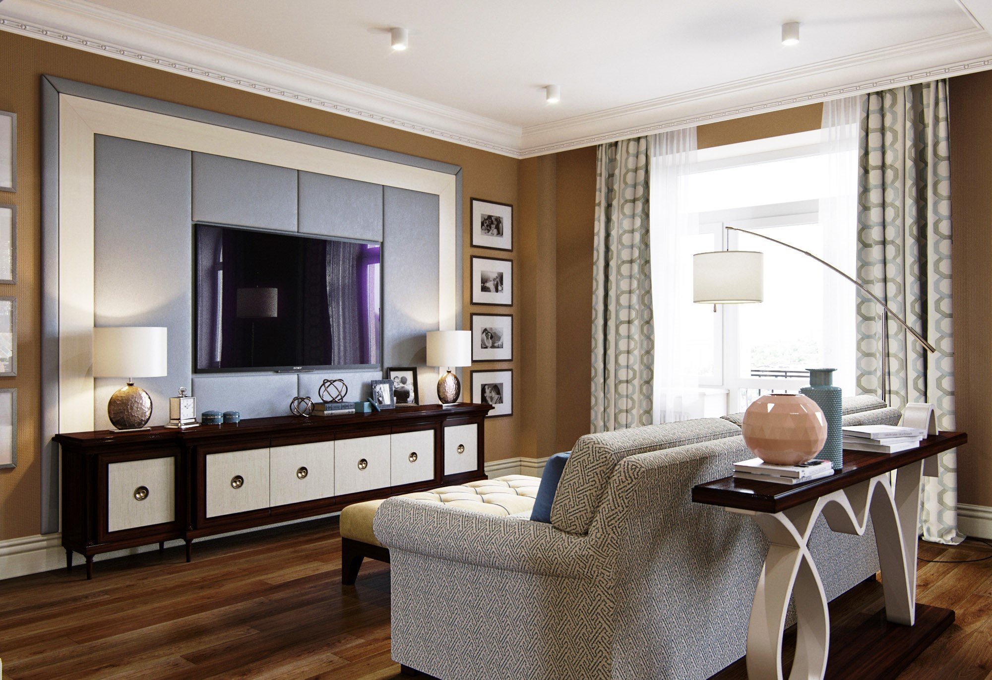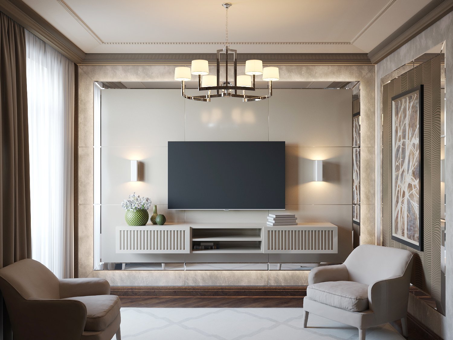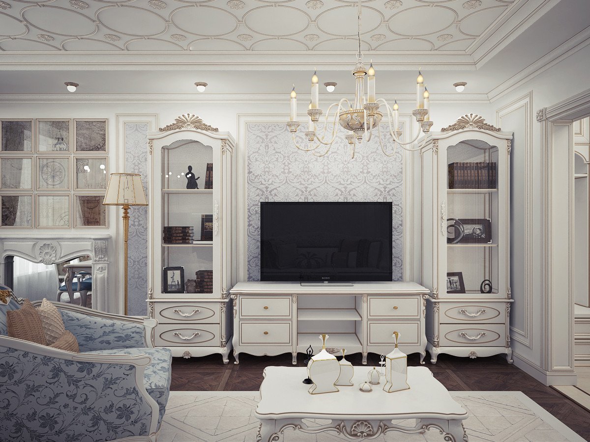 Зона телевизора в гостиной Неоклассика