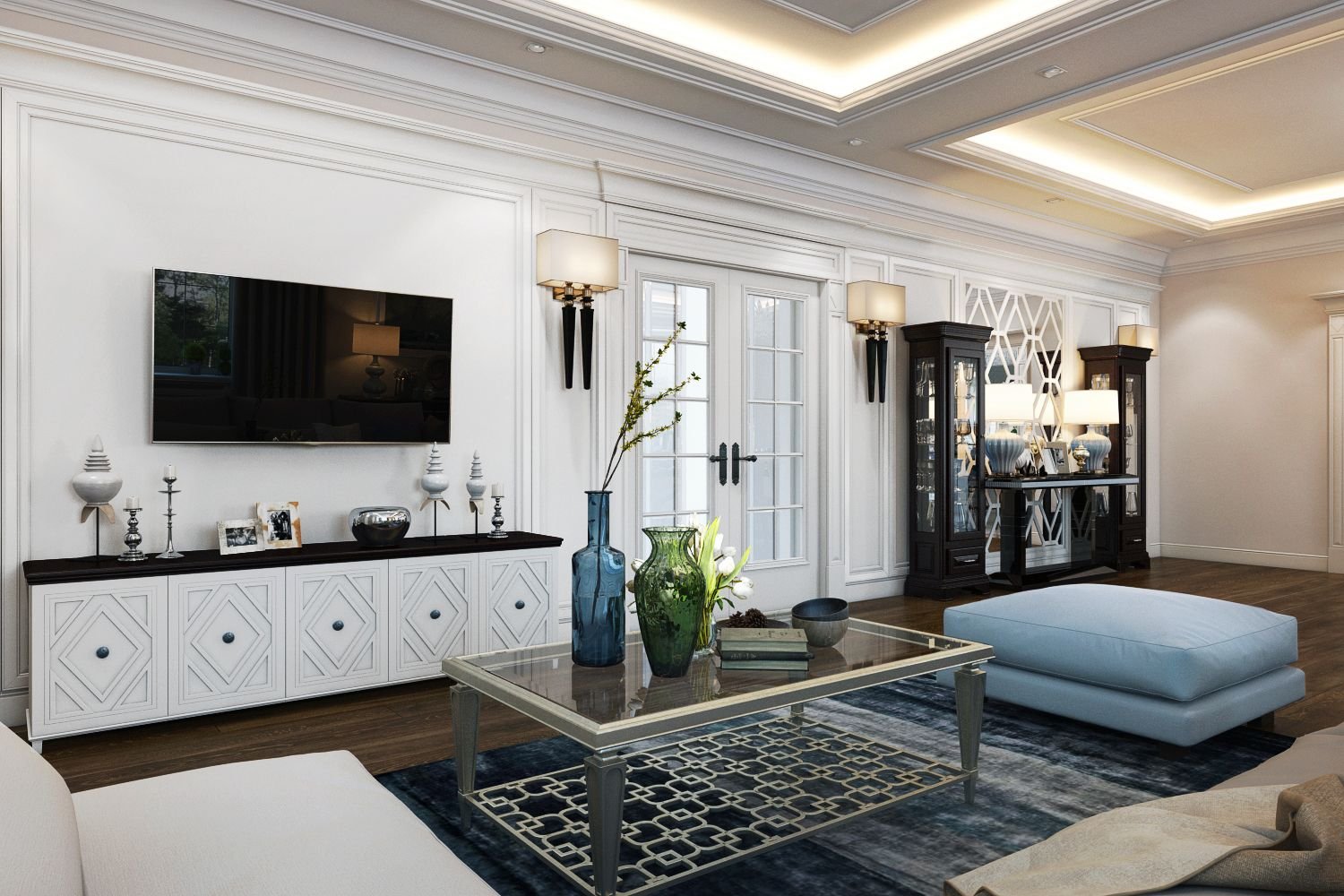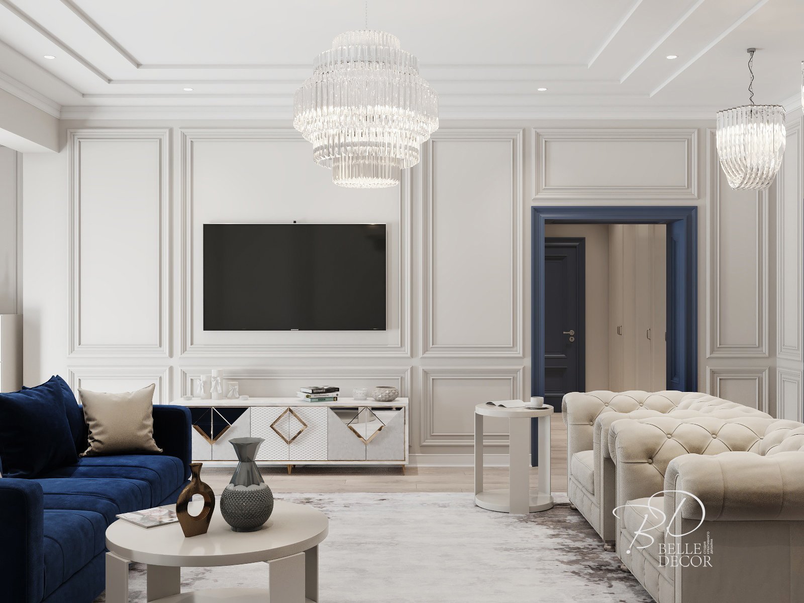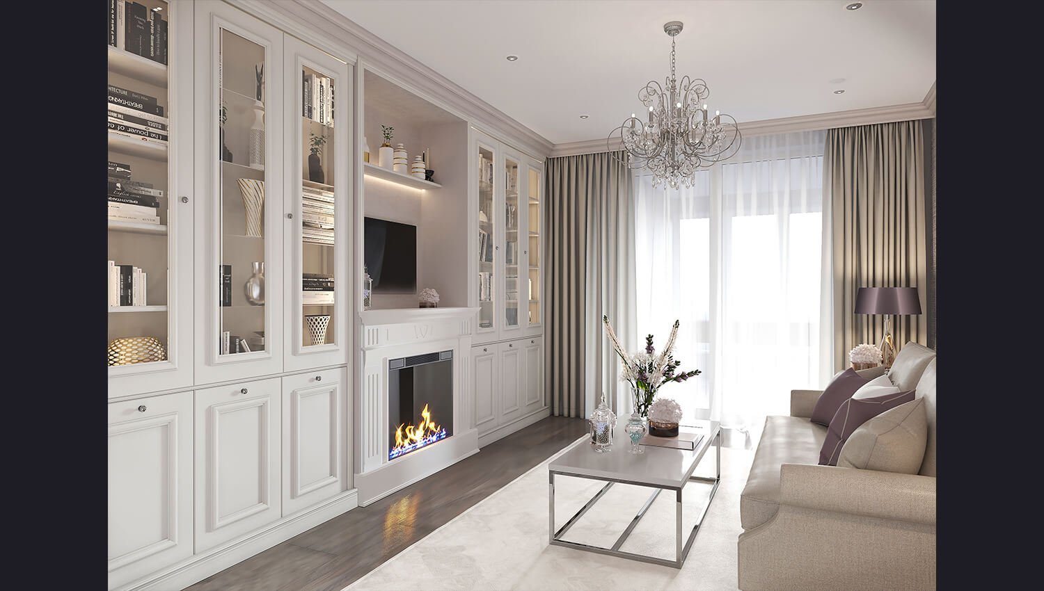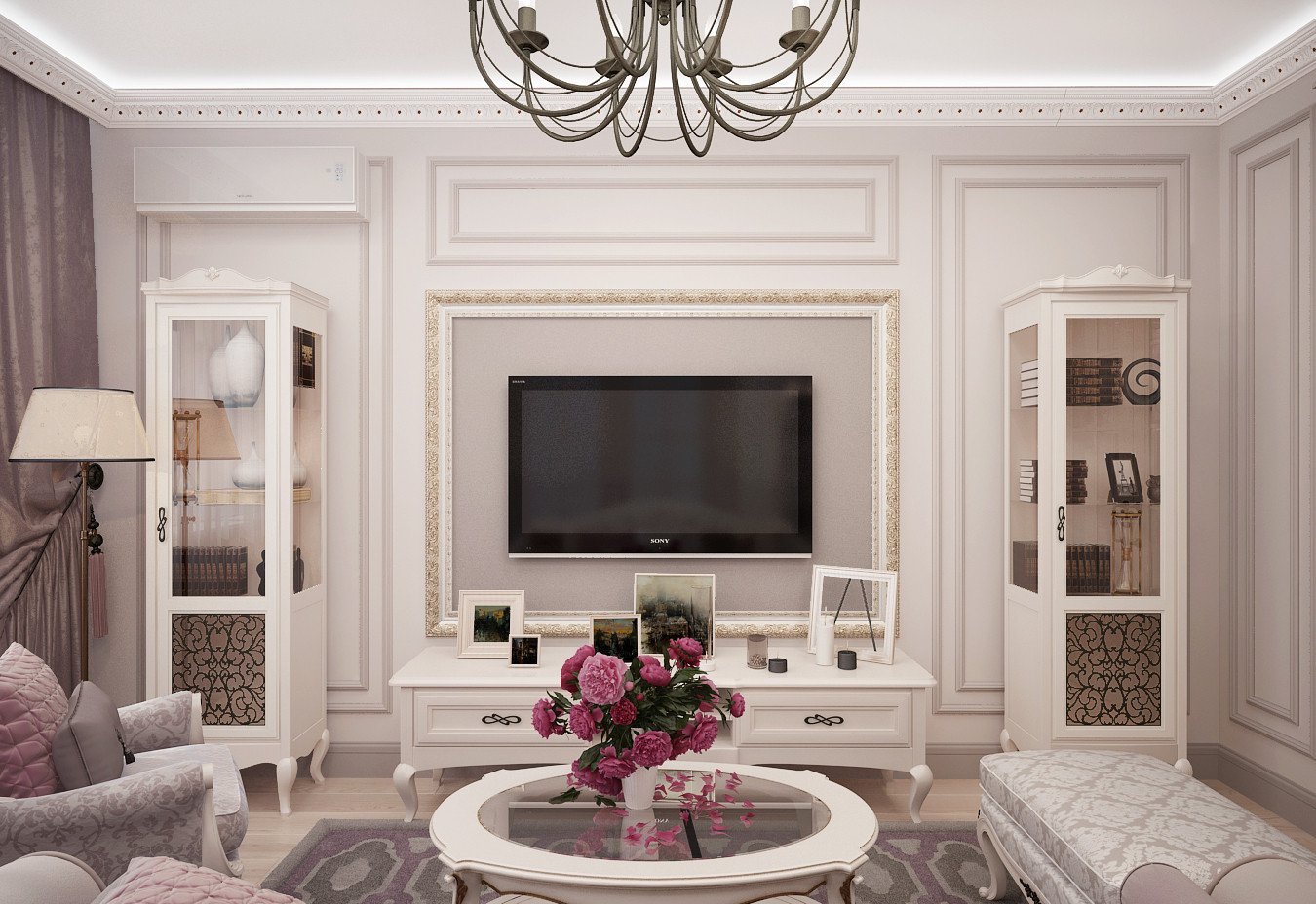 Зона телевизора в гостиной Неоклассика