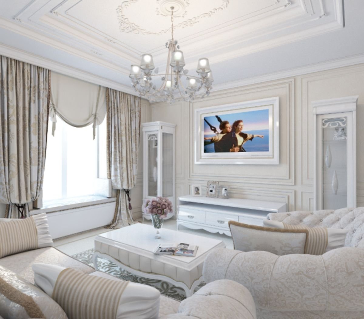 Гостиная белая классика