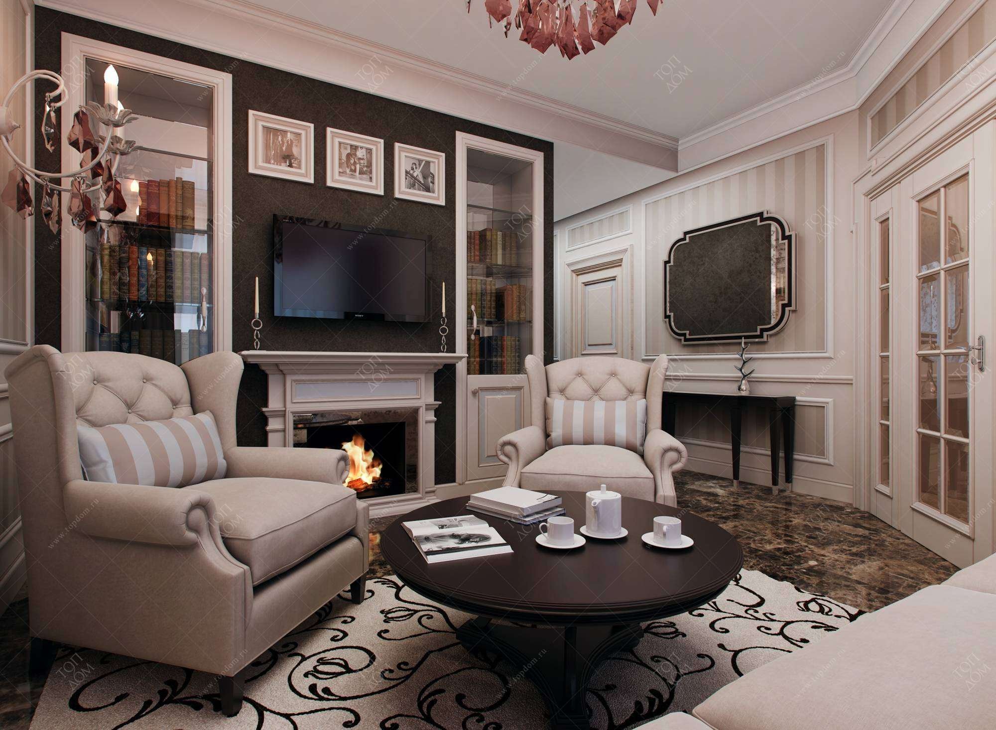 Гостиная с камином интерьер Неоклассика