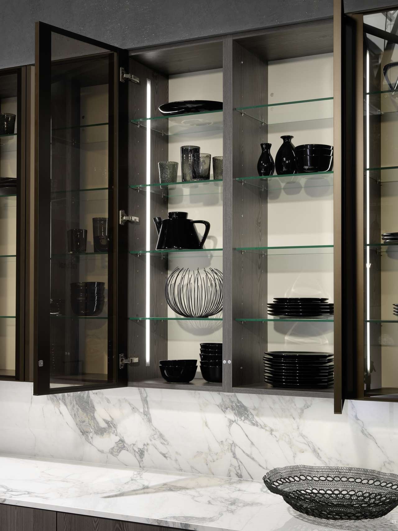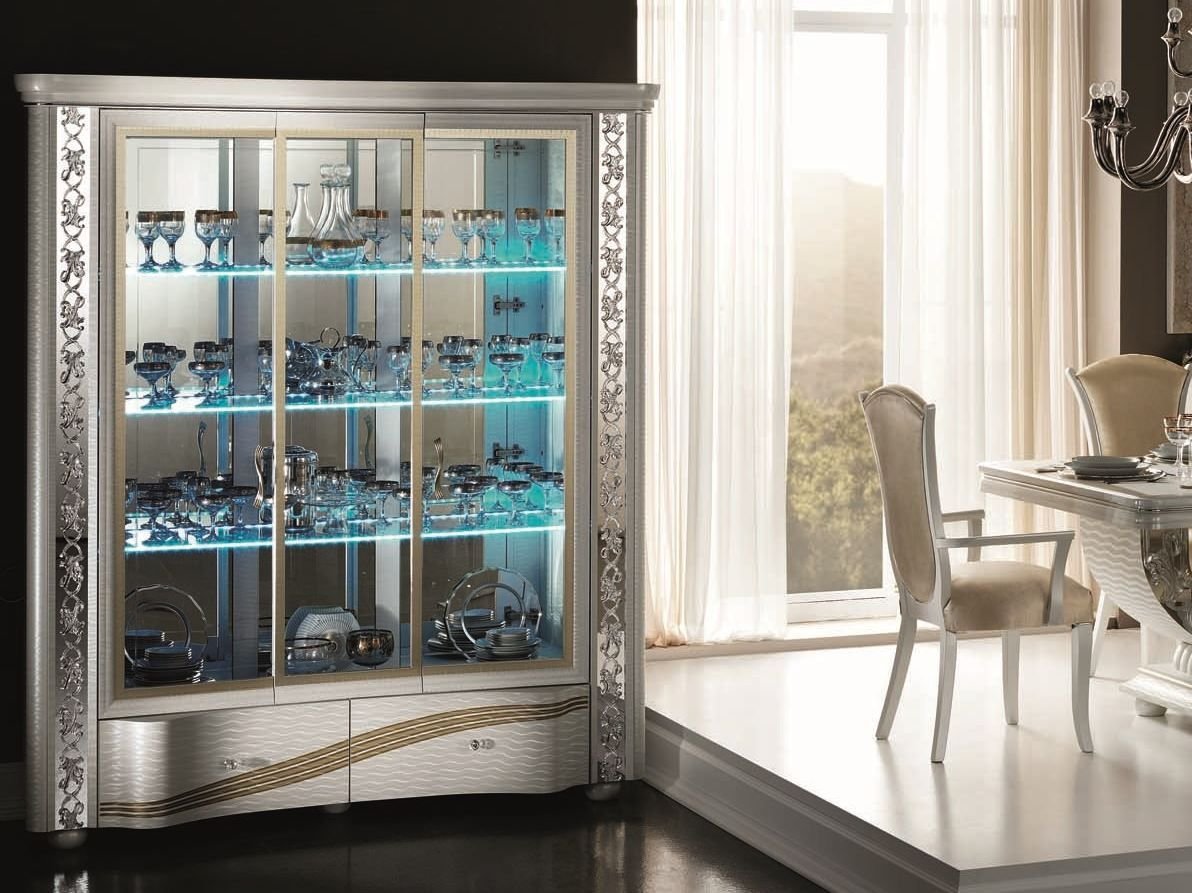 Стеклянный шкаф для посуды с подсветкой