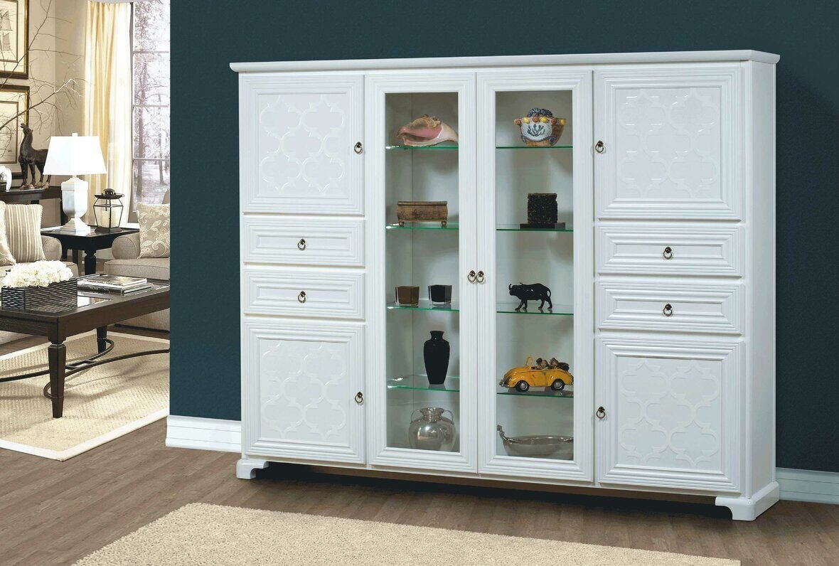 Шкаф витрина Кензо белый глянец