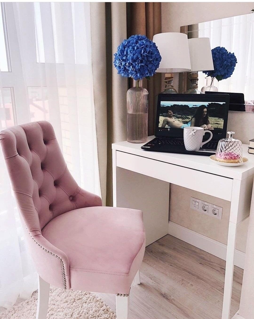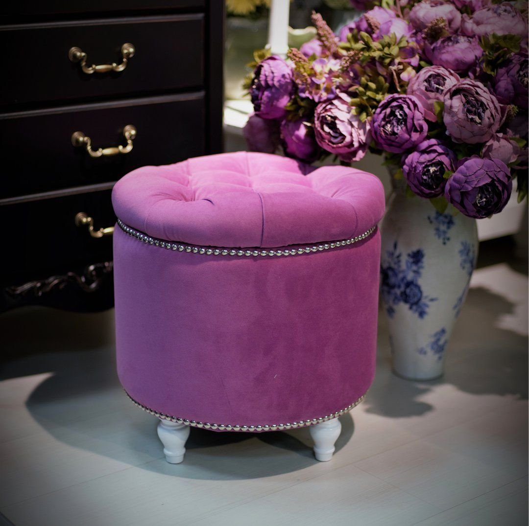 Розовый пуфик для туалетного столика