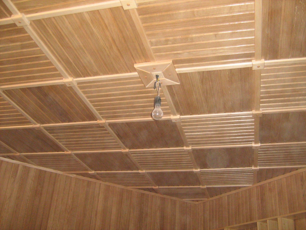 Потолок деревянной вагонкой