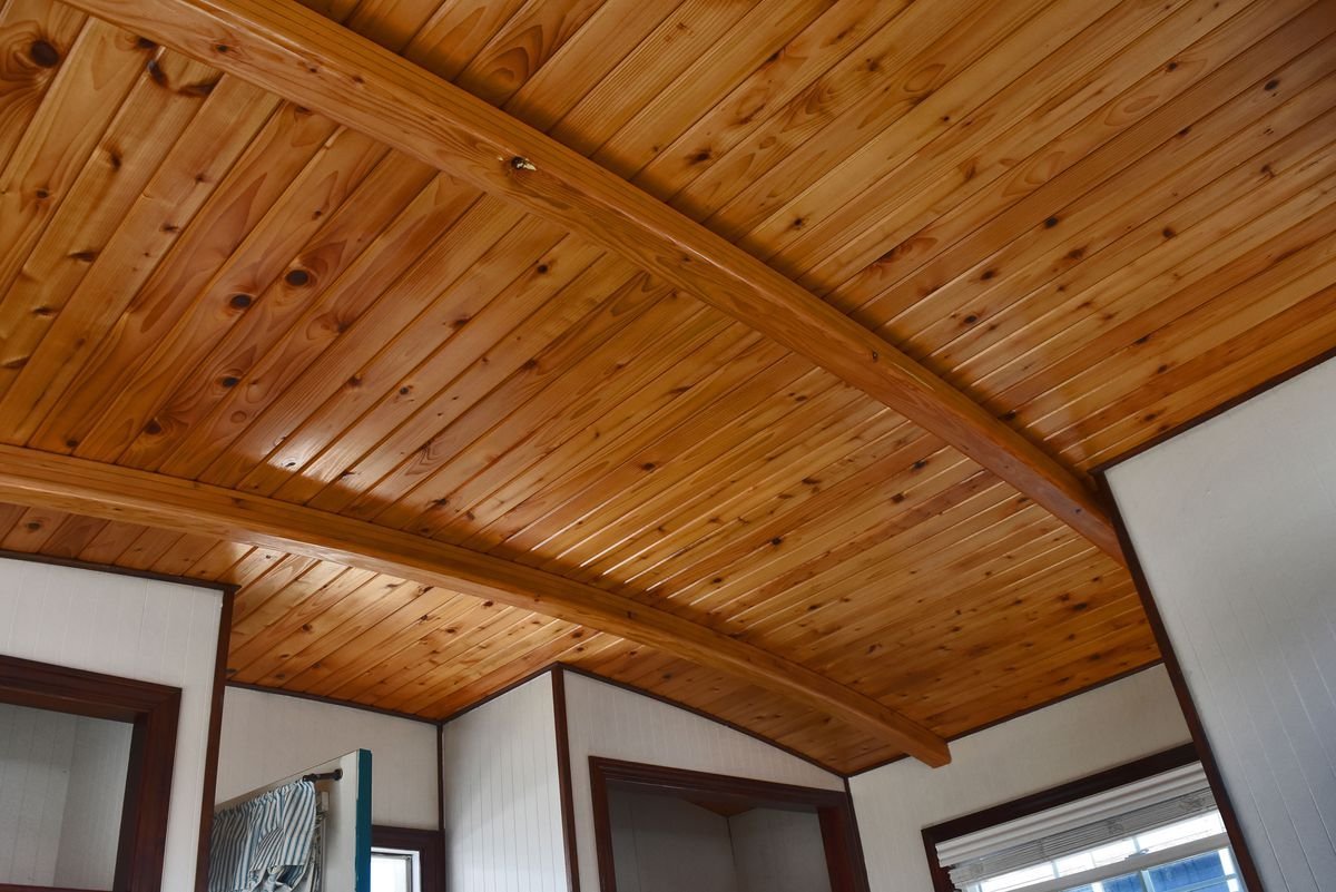 Деревянная вагонка на потолке