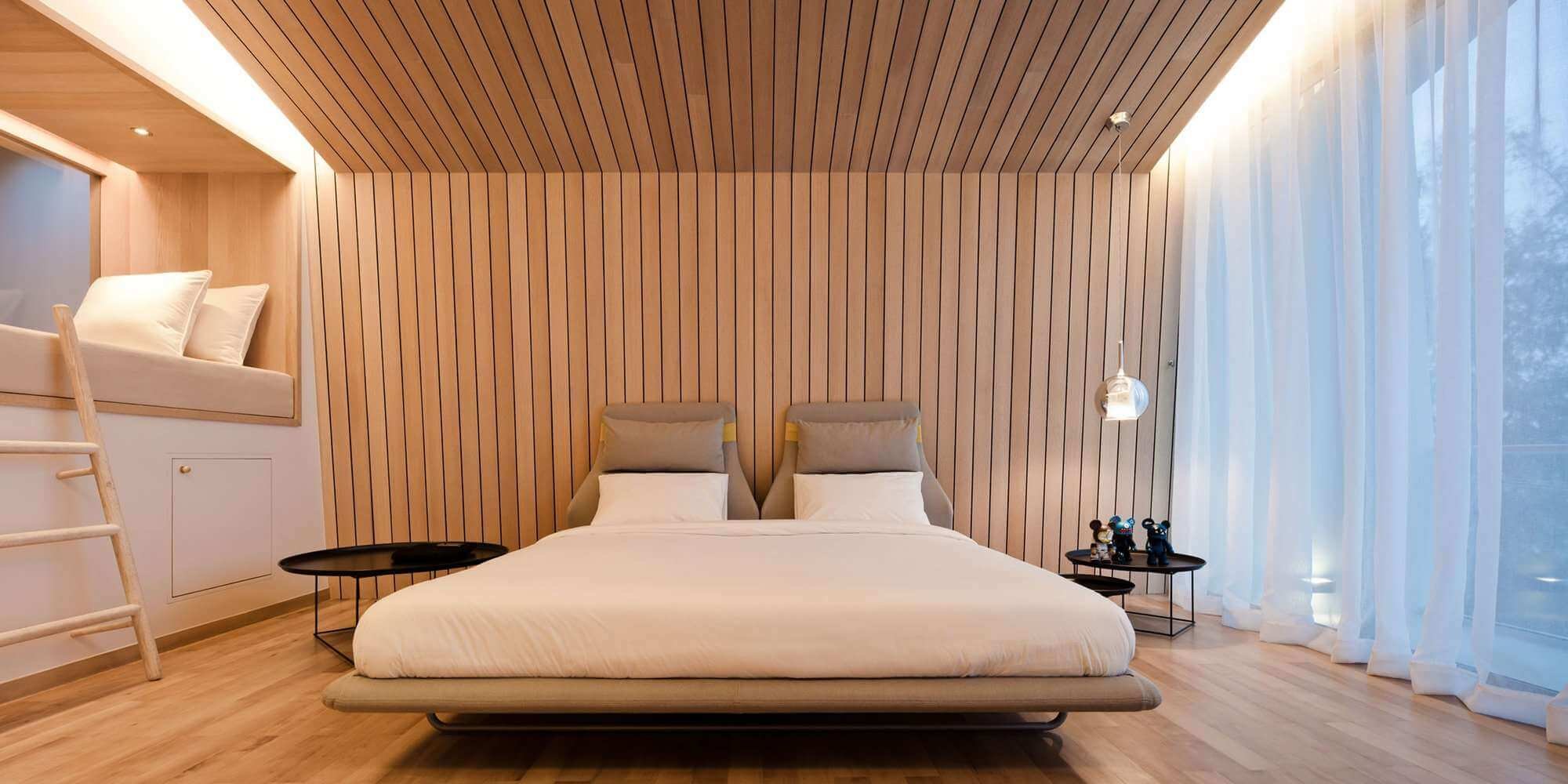 Потолок из вагонки в спальне