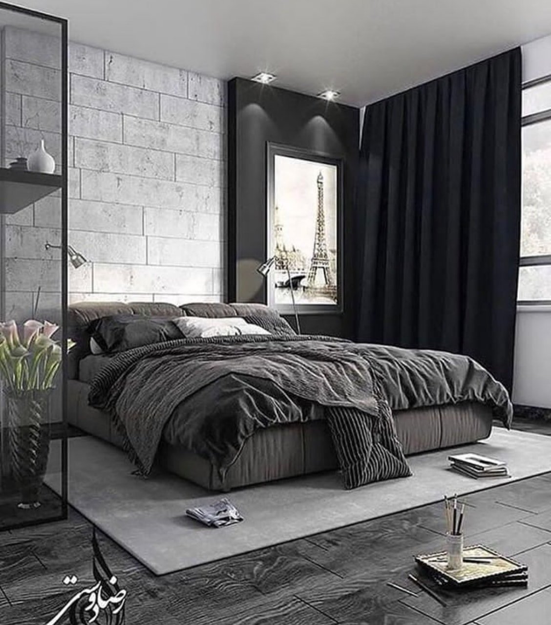 Черно белая спальня