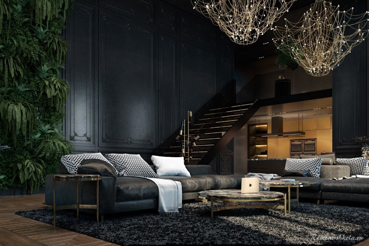Тотал Блэк комната интерьер
