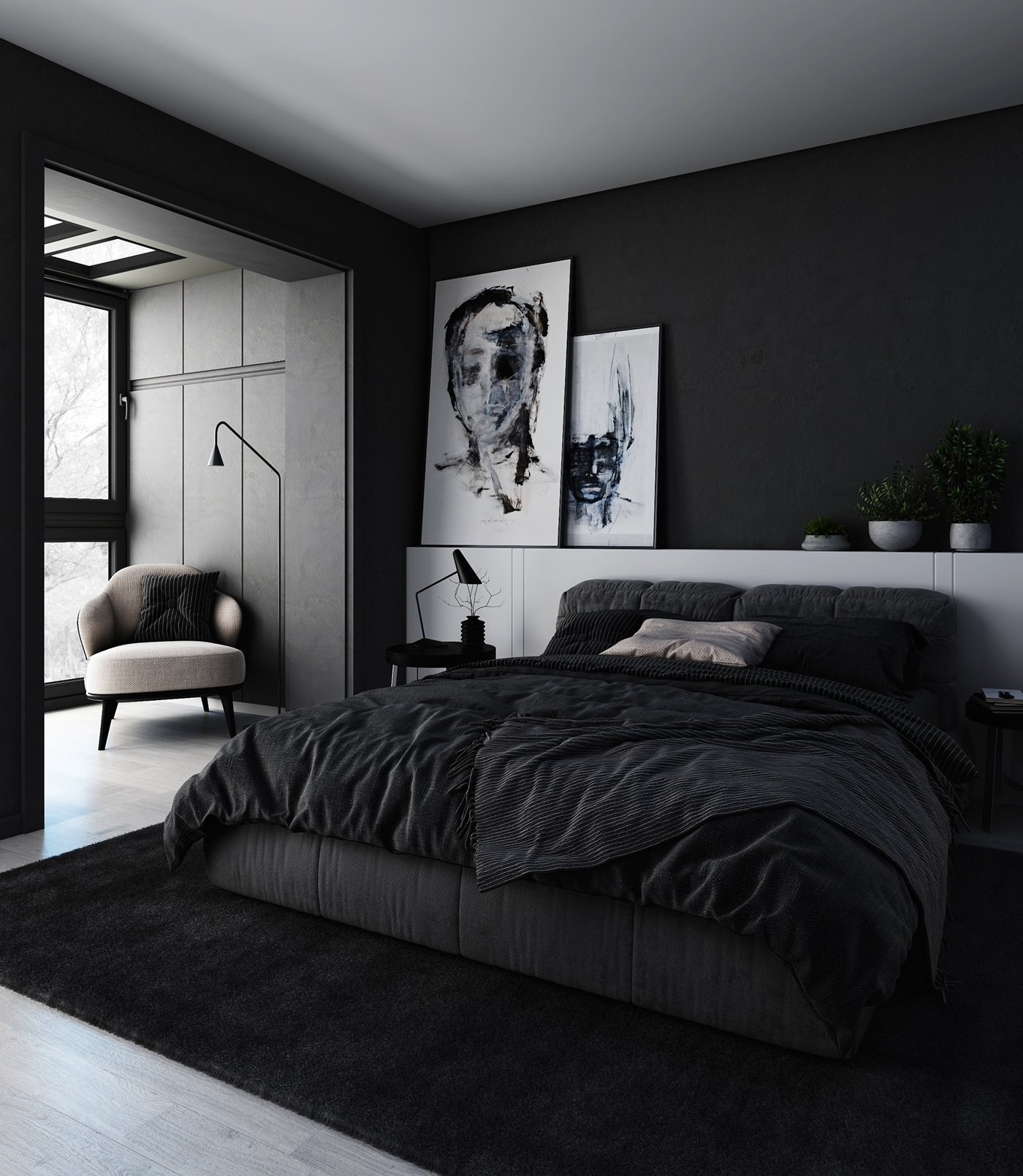 Тотал Блэк спальня Минимализм
