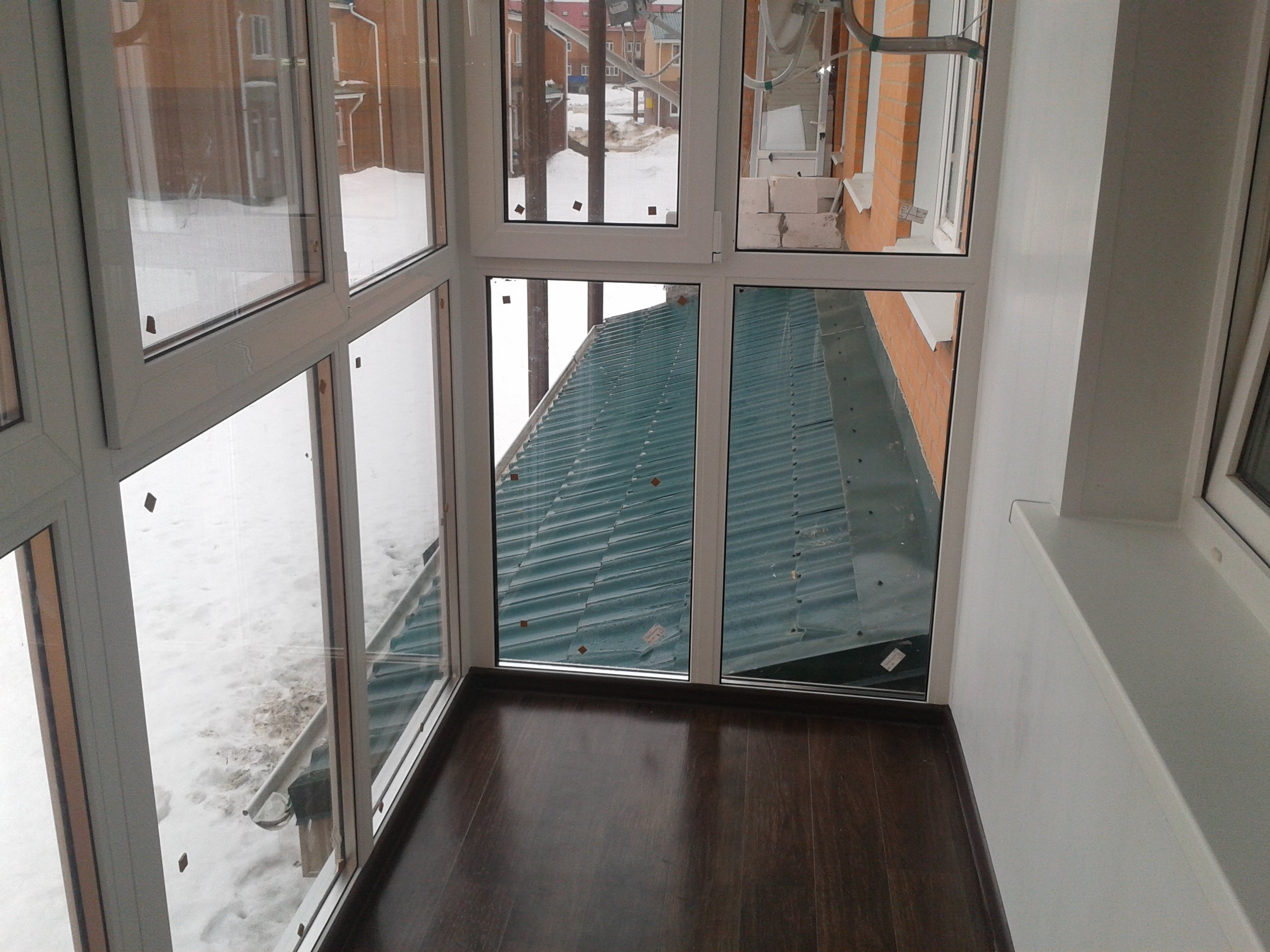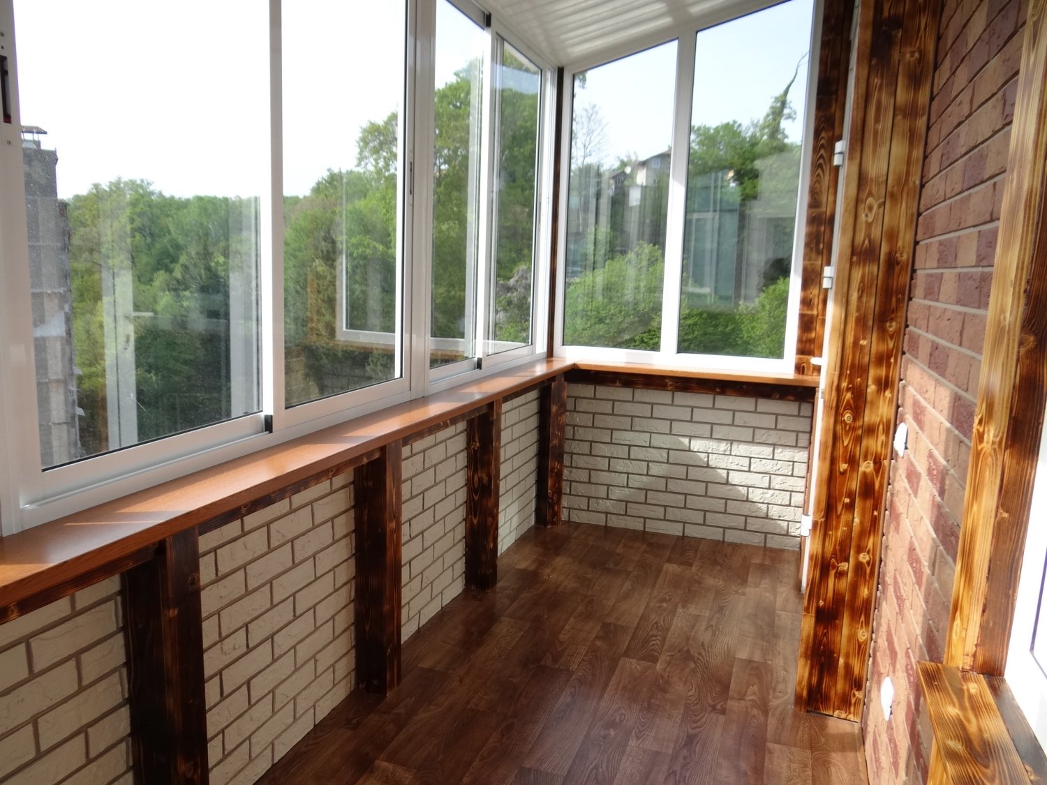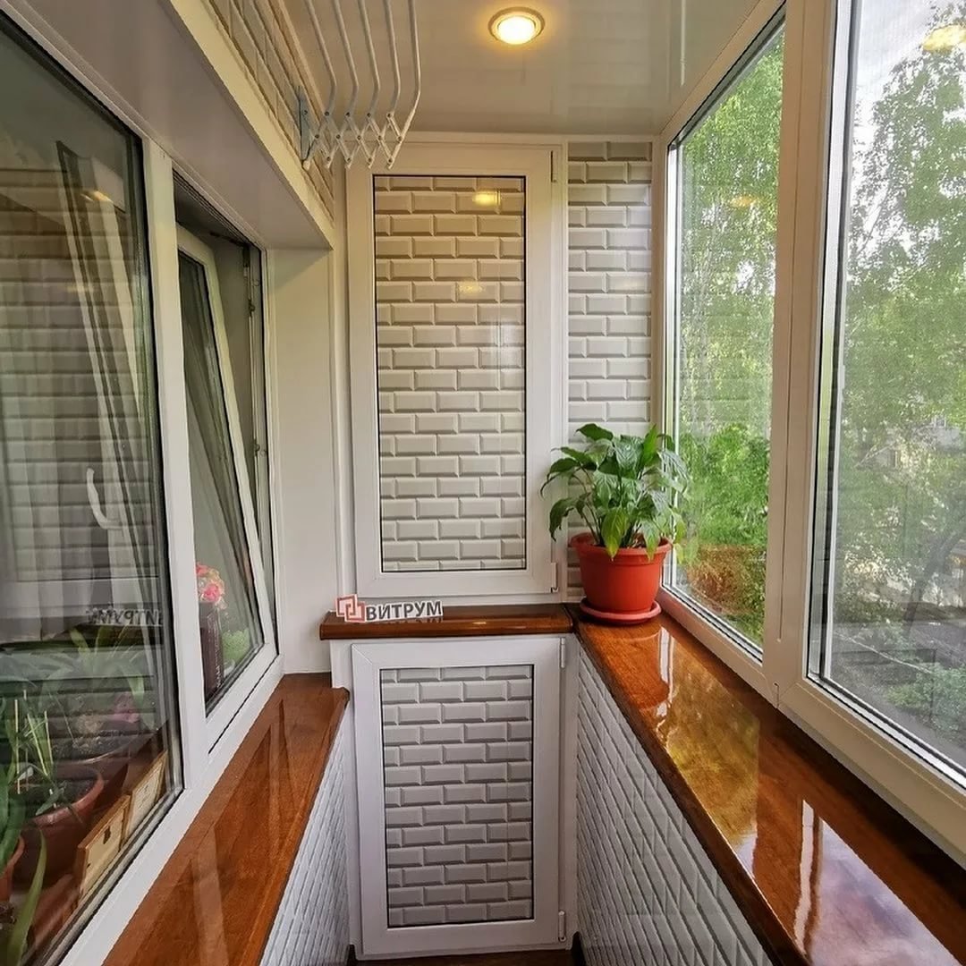 Кирпичный застекленный балкон