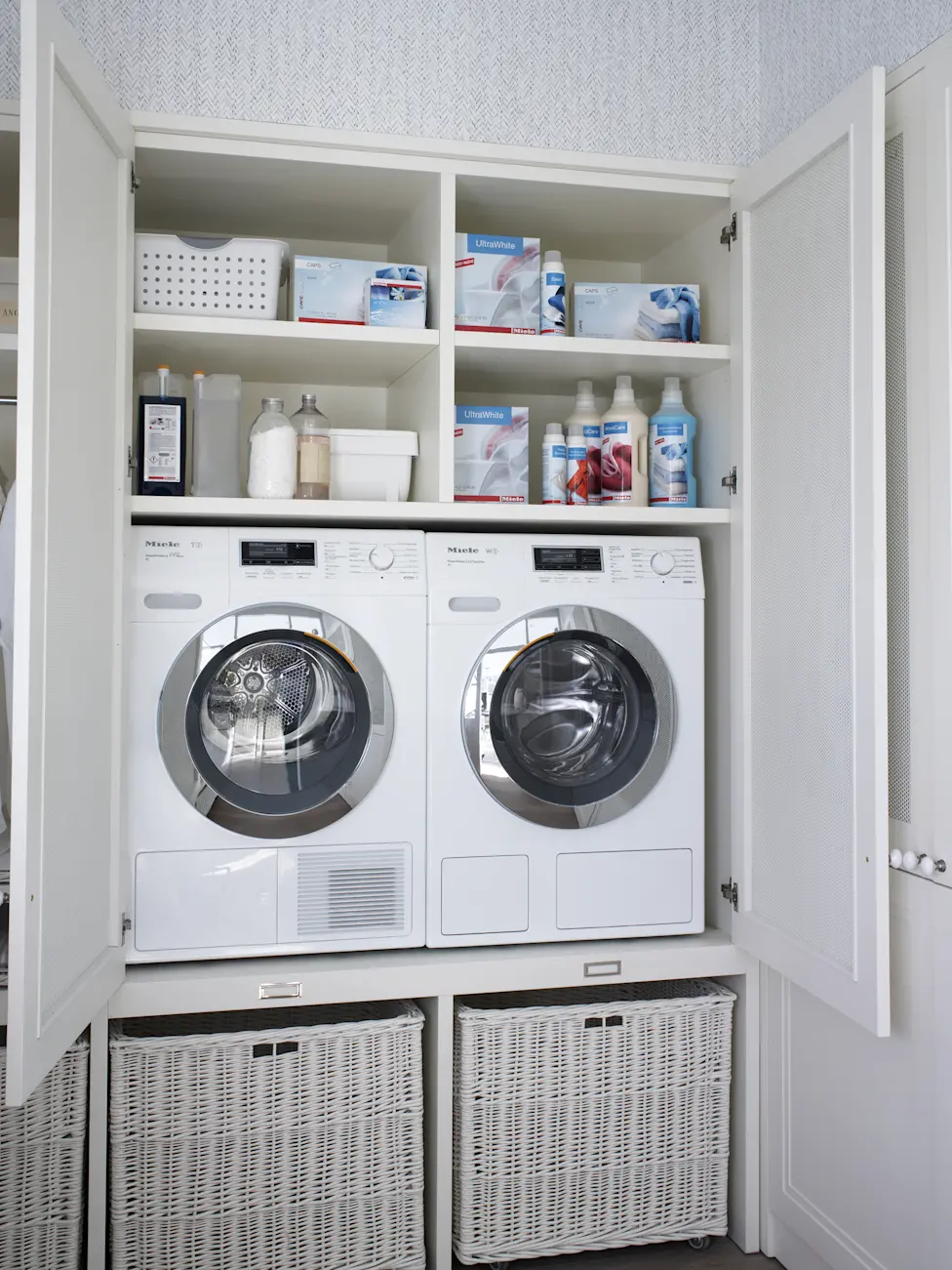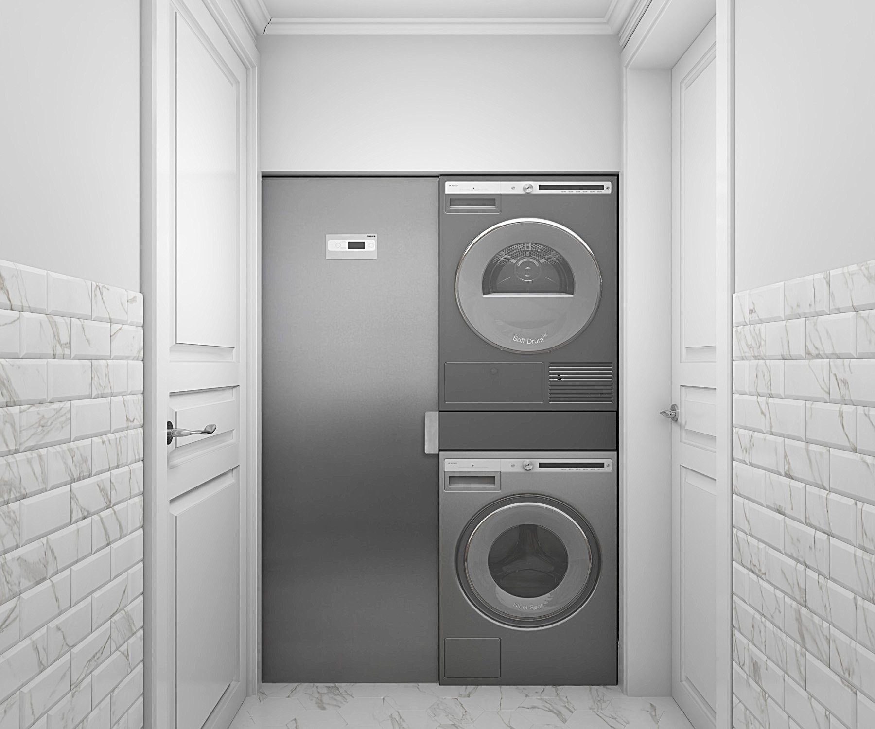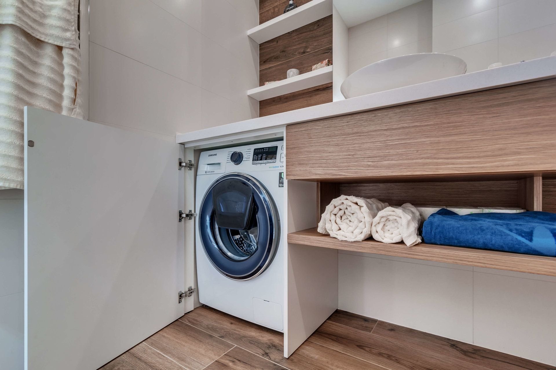 Встроенный шкаф под стиральную и сушильную машину в ванной