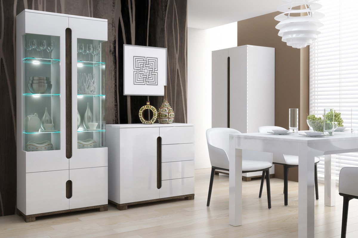 Сервант для посуды в современном стиле белый