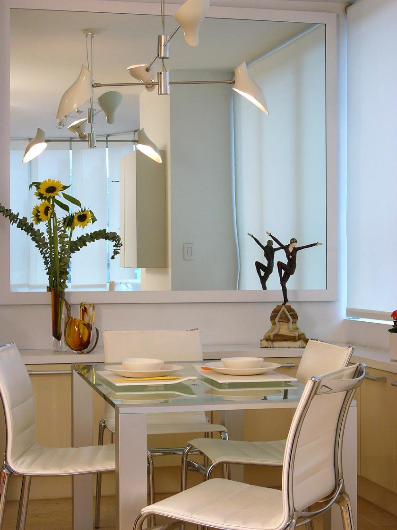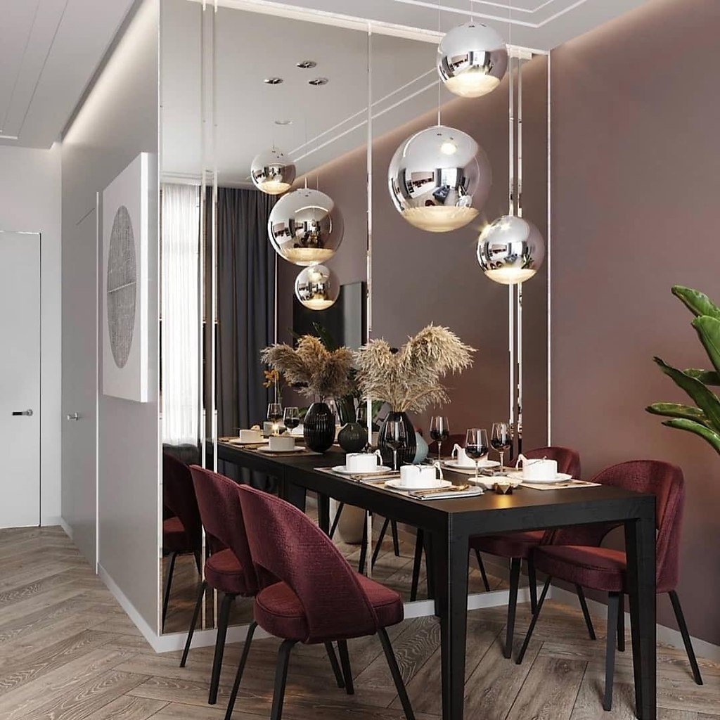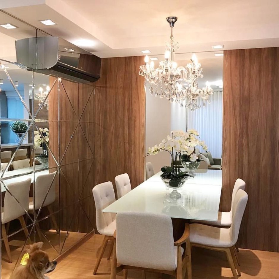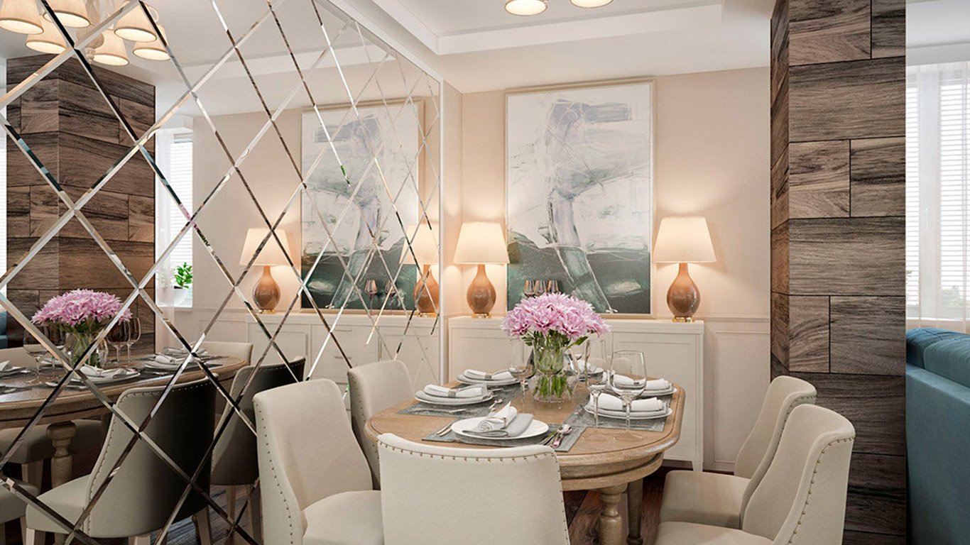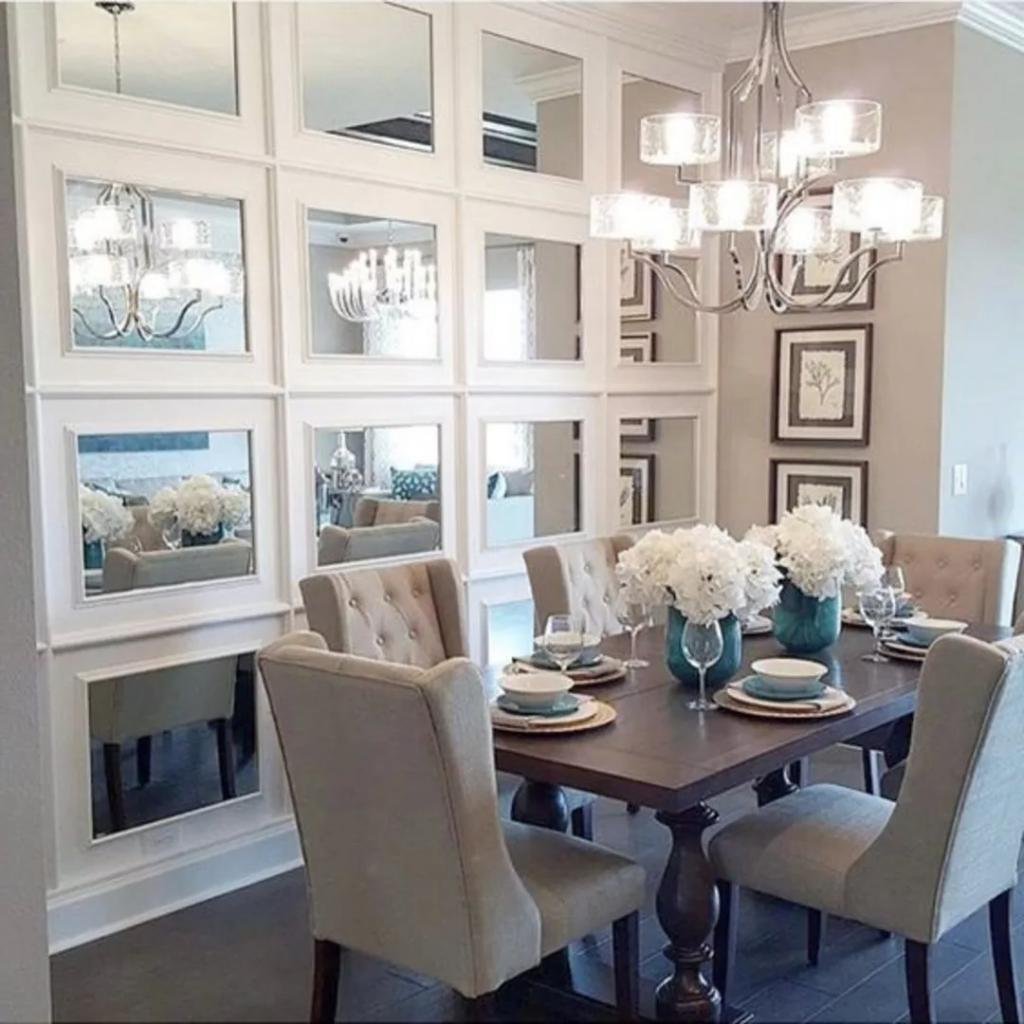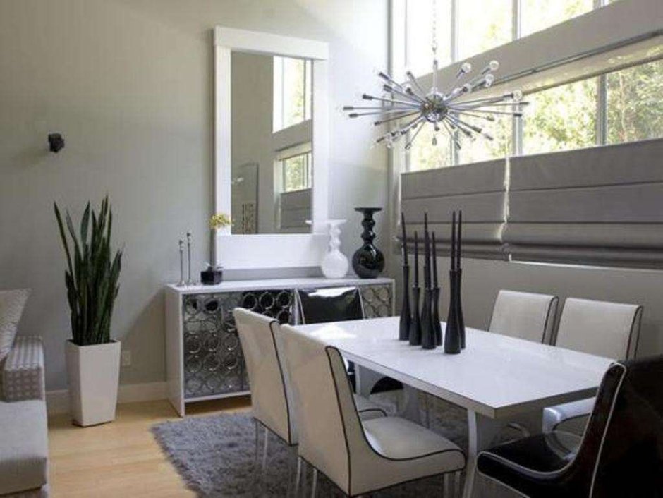 Зеркальное панно в интерьере обеденная зона