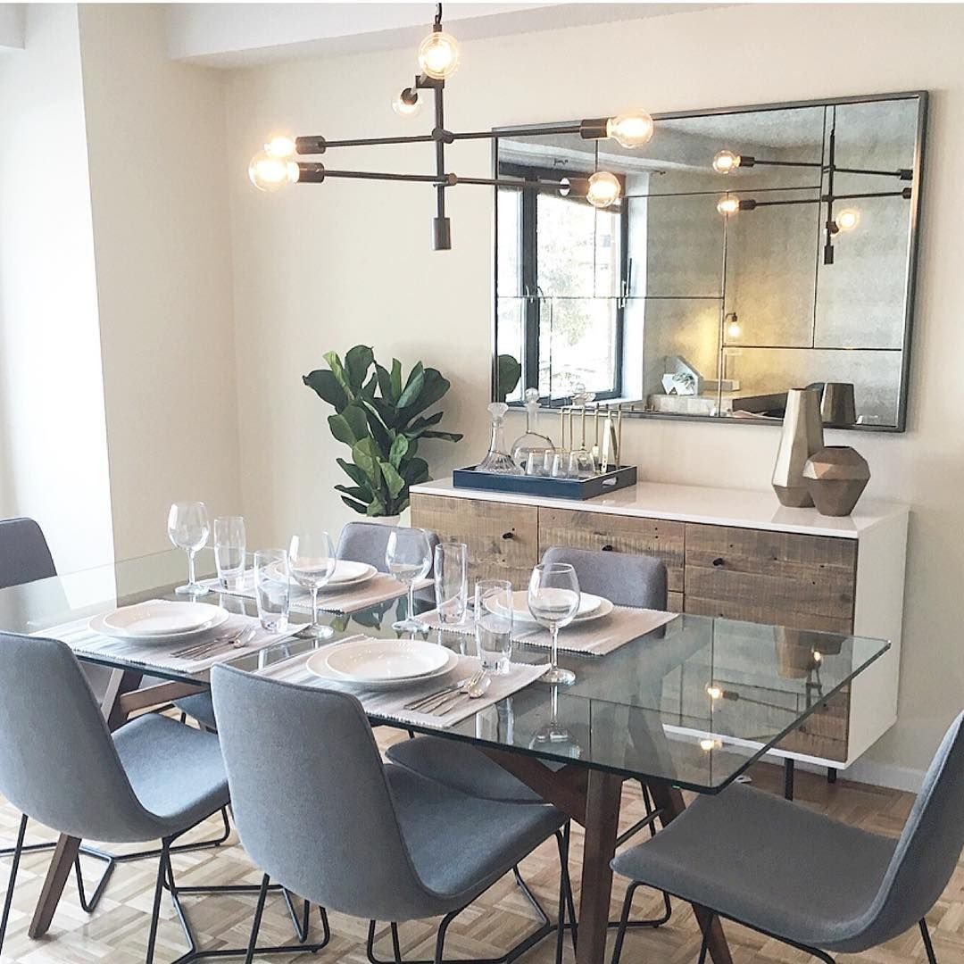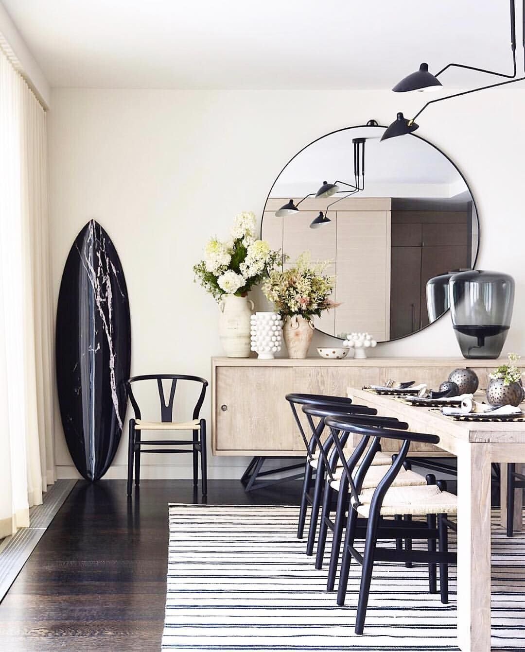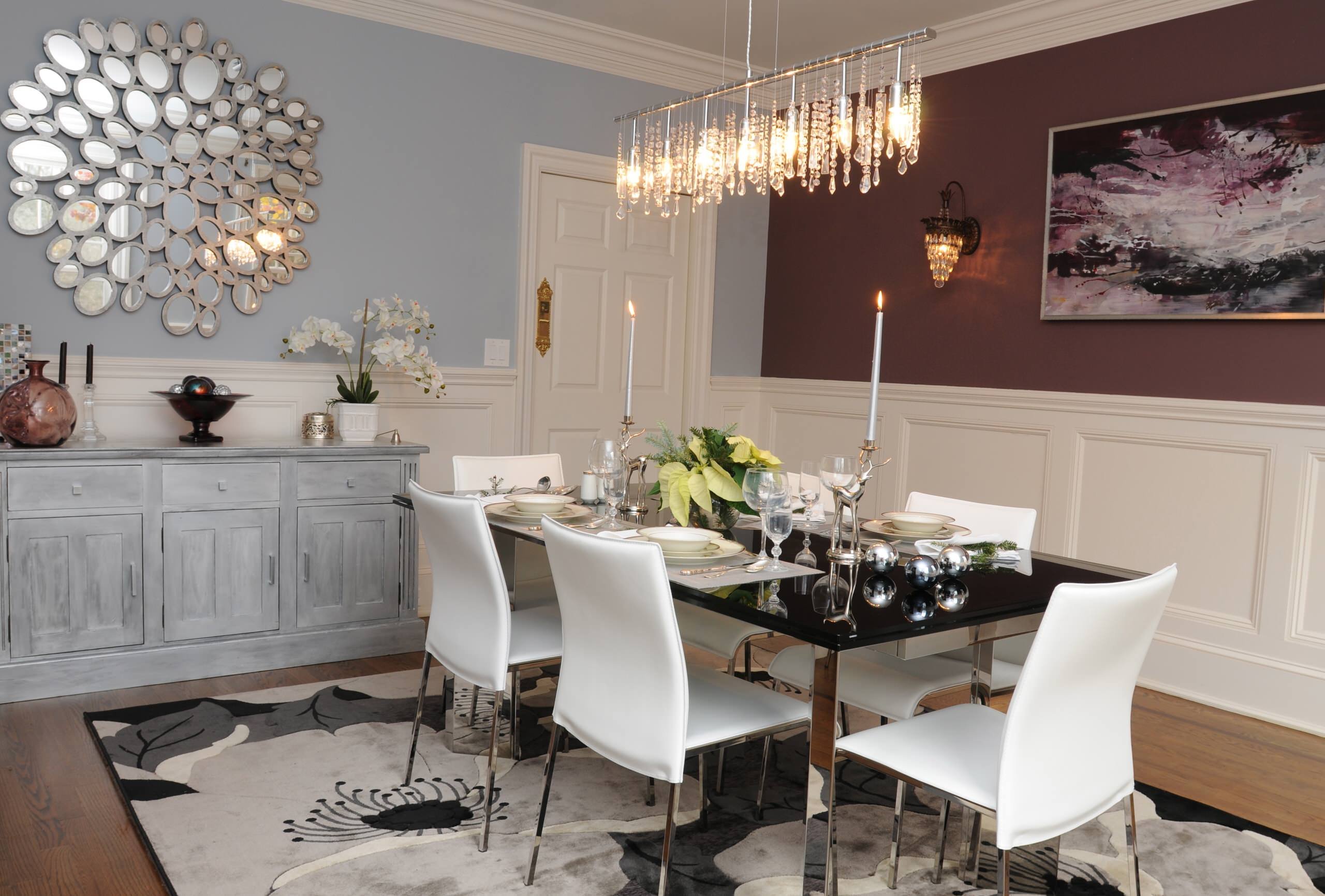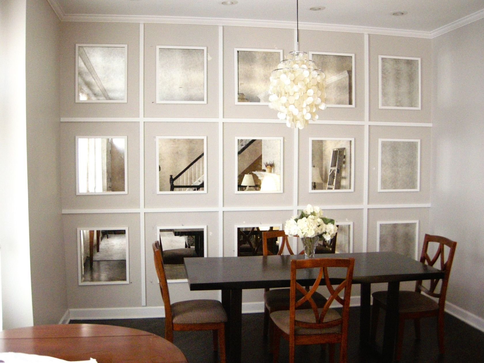 Зеркальное панно в интерьере обеденная зона