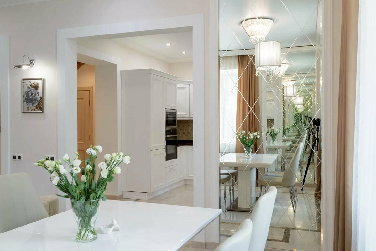 Зеркала в интерьере кухни для расширения пространства