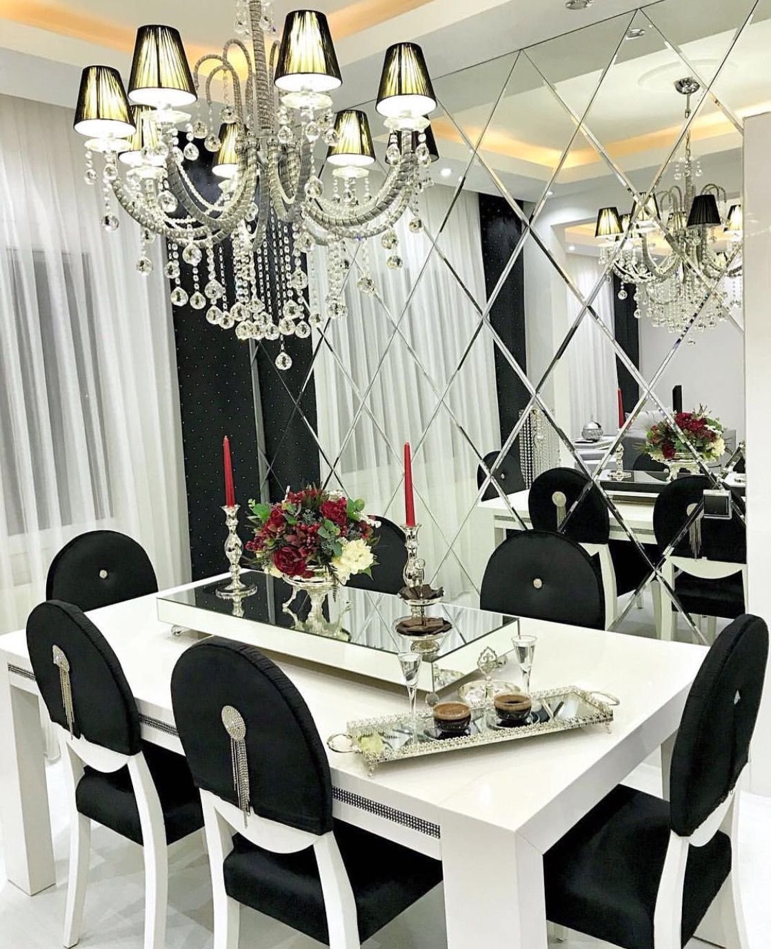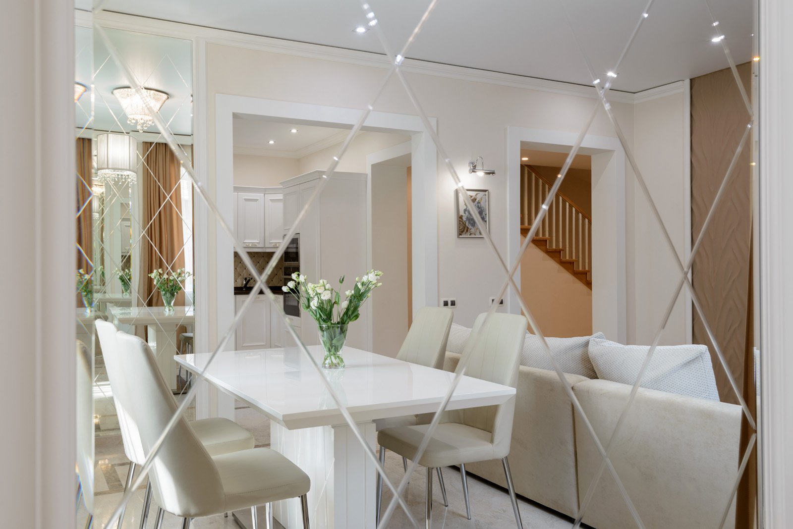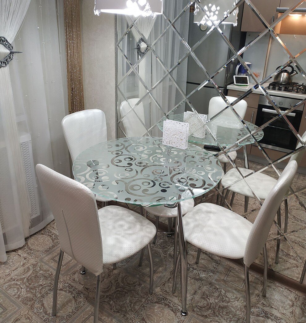 Зеркальная плитка в обеденной зоне