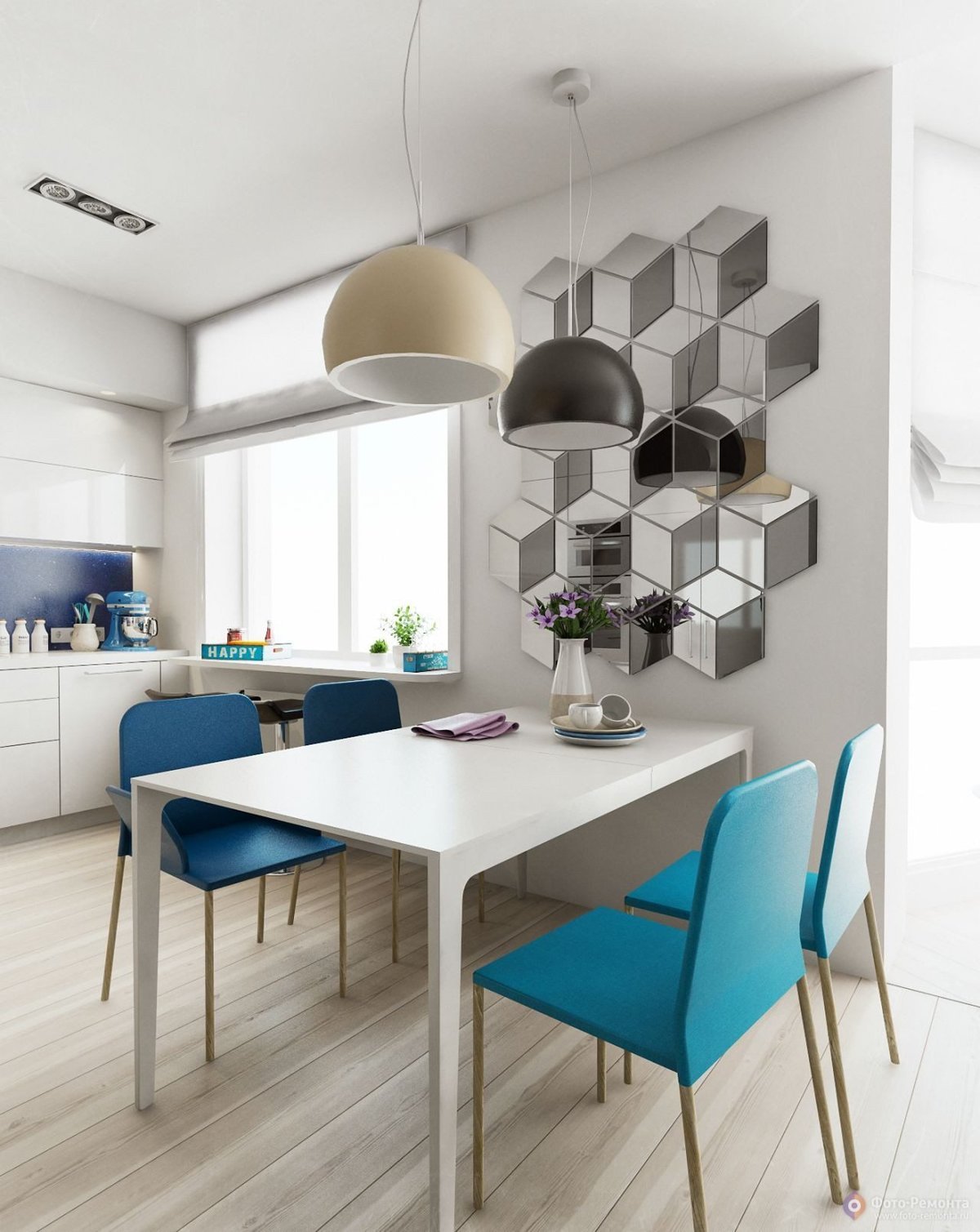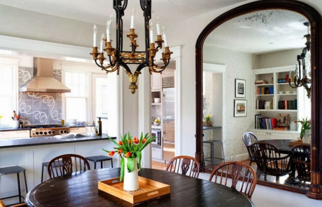 Зеркало на кухне над обеденным столом
