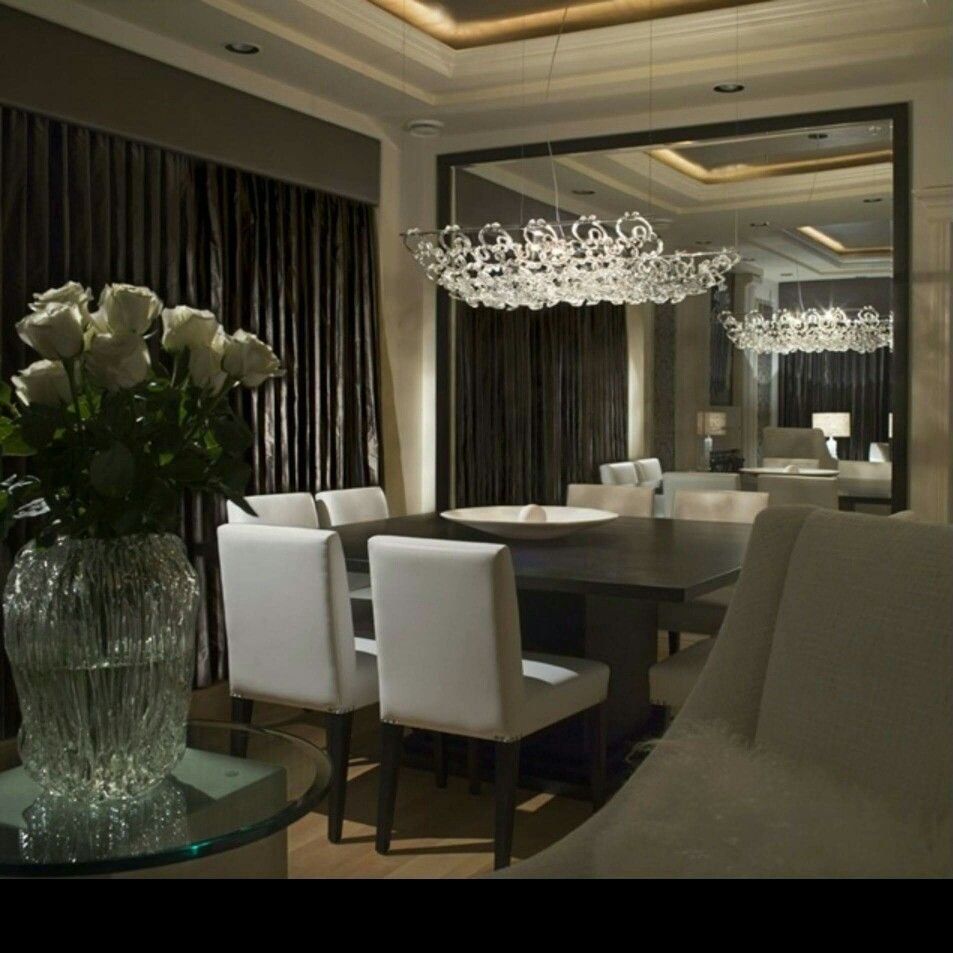 Люстра над обеденным столом в гостиной