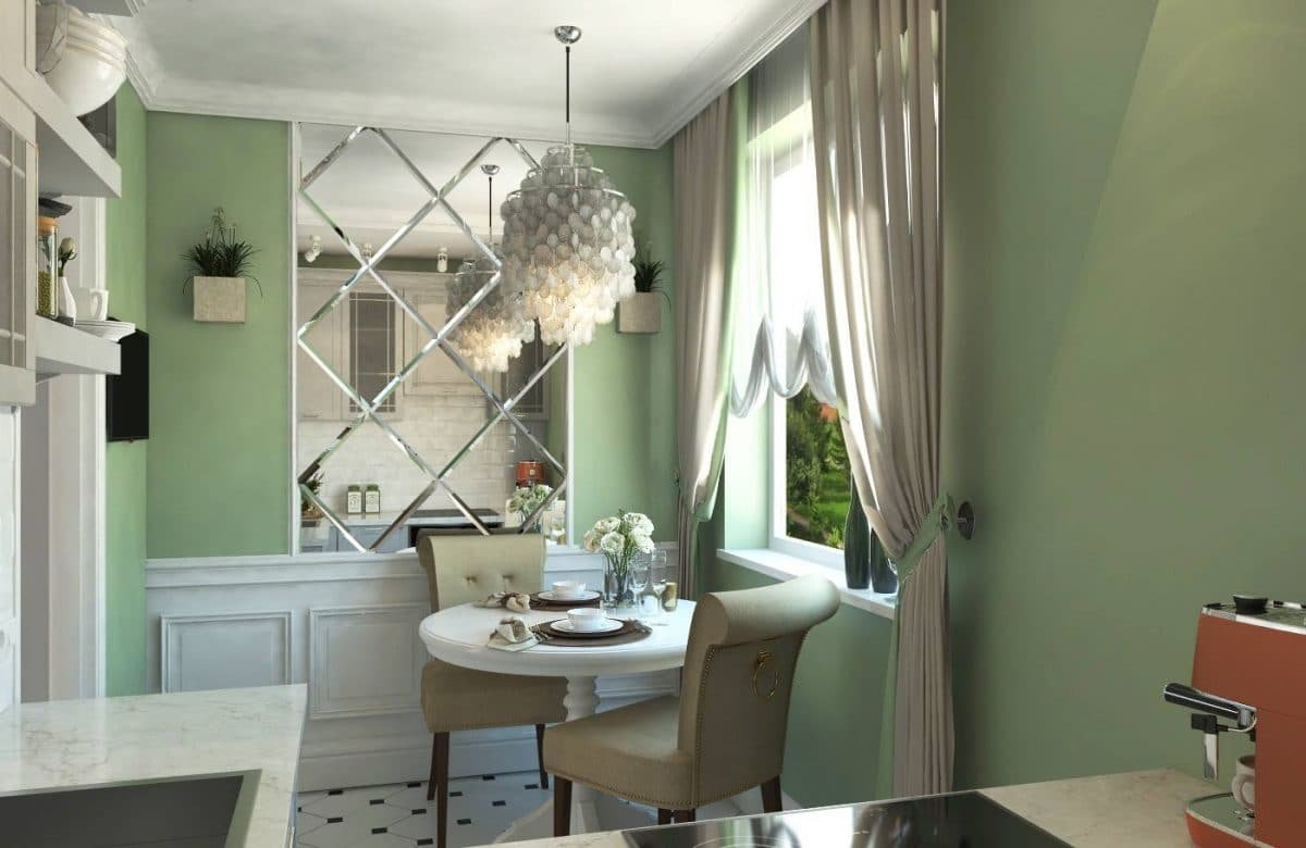 Зеркало на кухне в интерьере