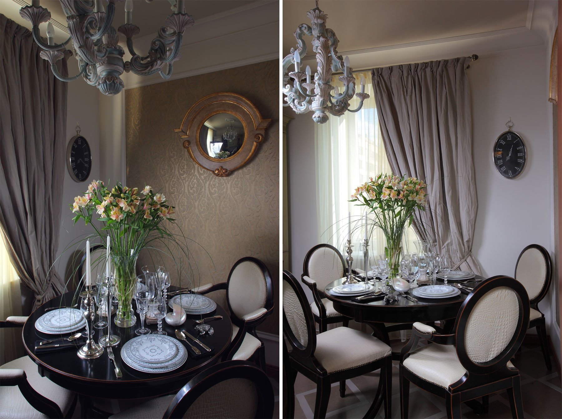Дизайн обеденной зоны с часами цифрами современная классика