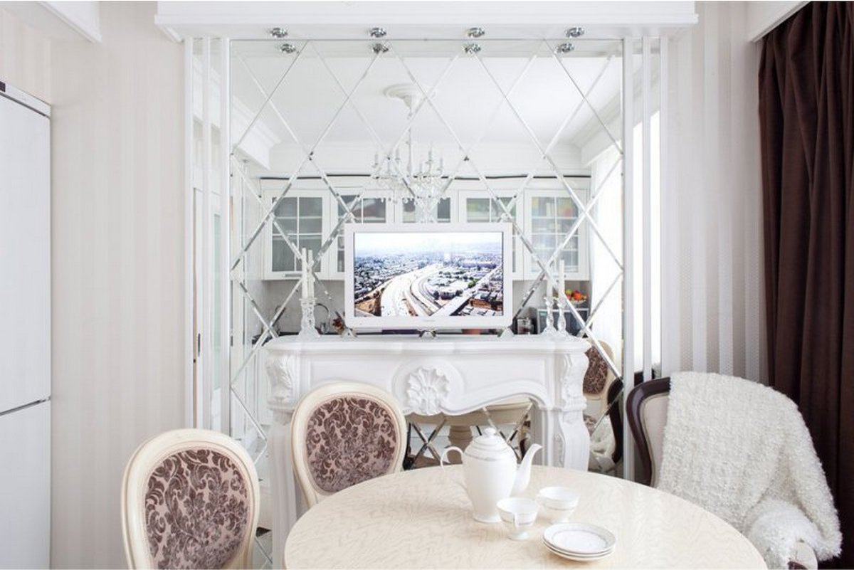 Зеркала в интерьере кухни гостиной