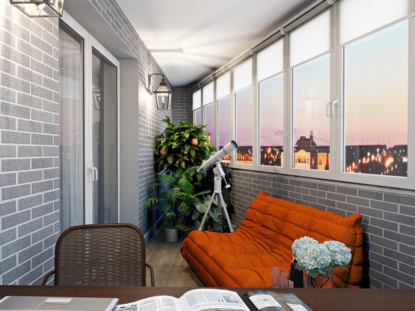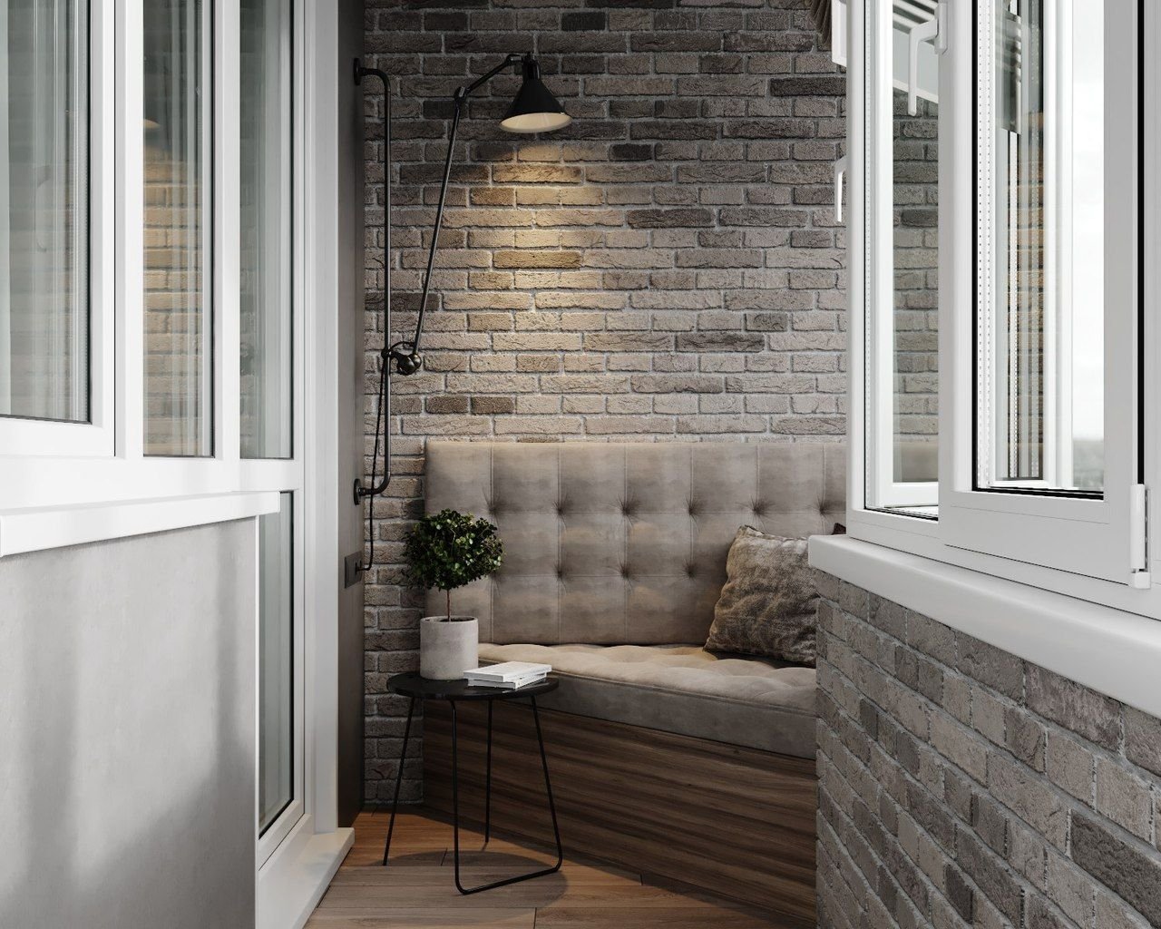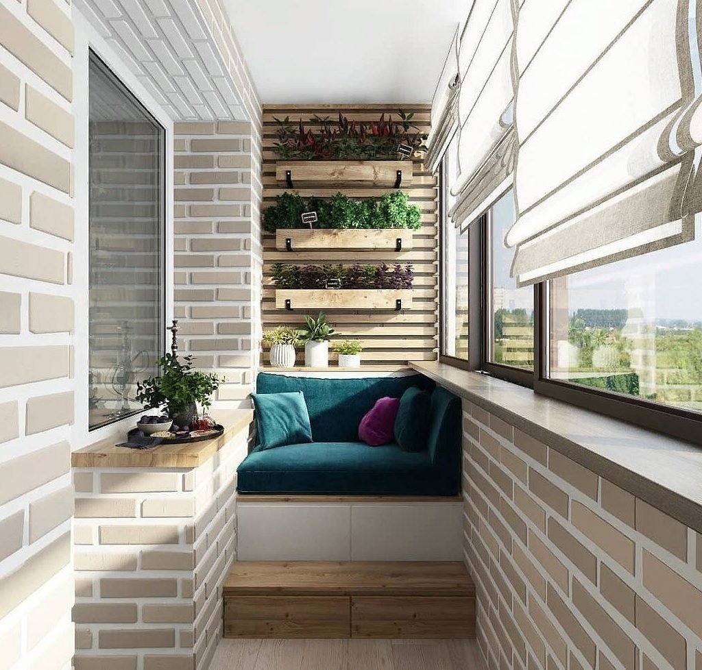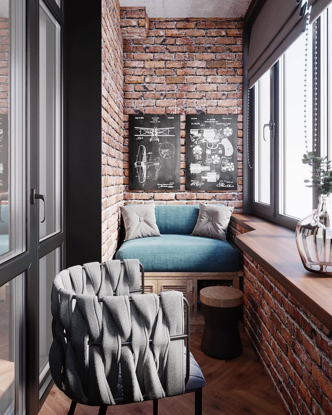 Кирпич в интерьере балкона