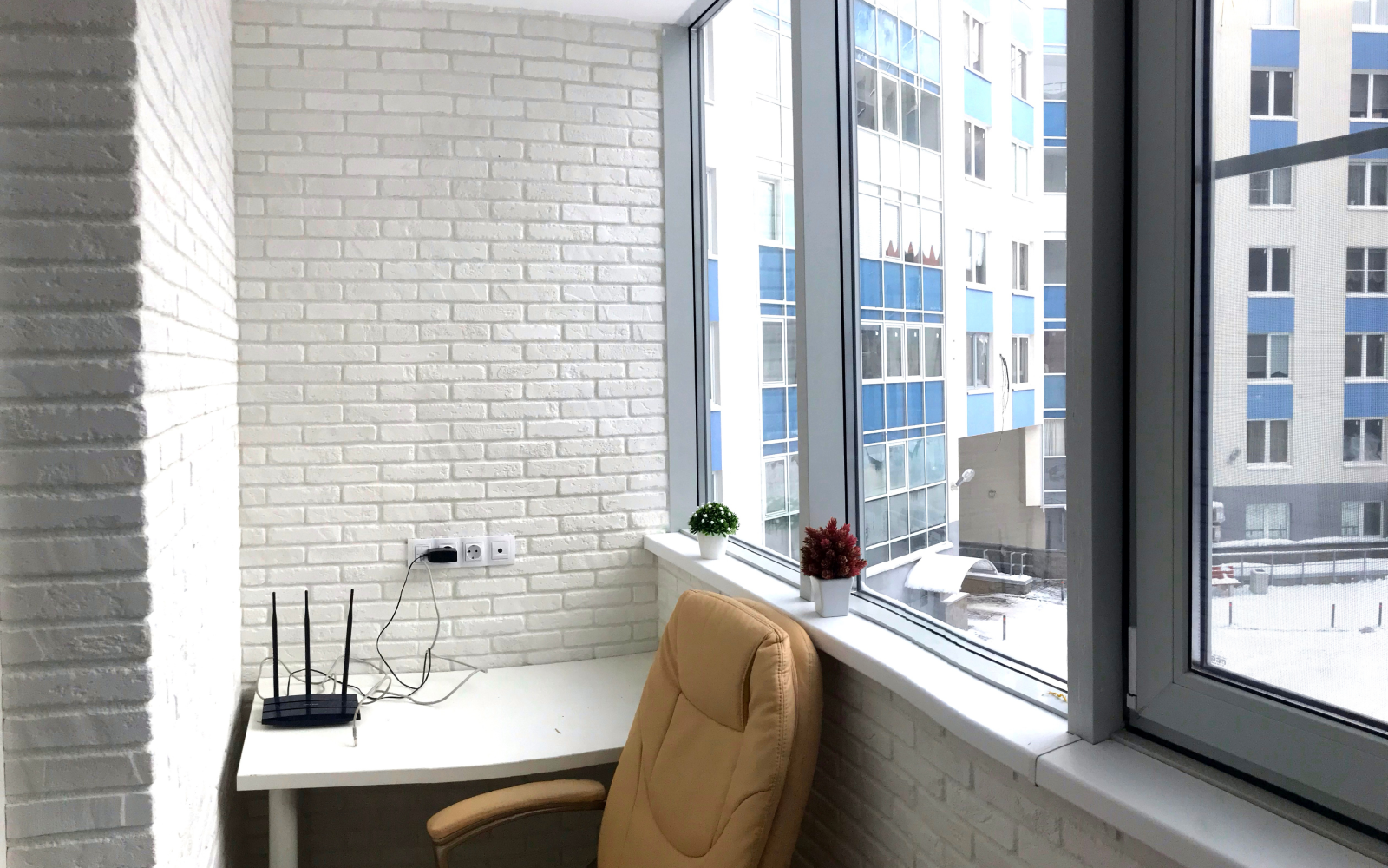Балкон белый кирпич