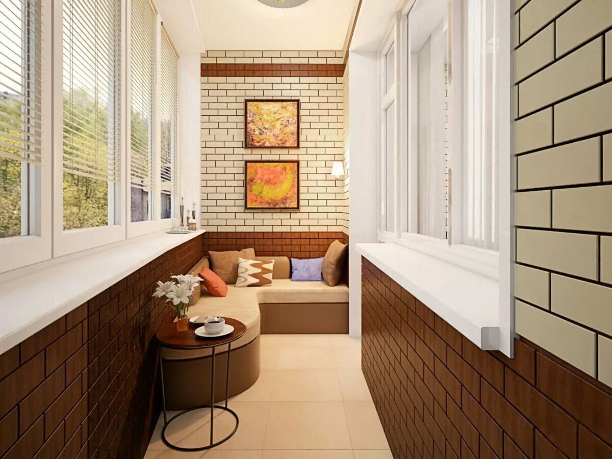 Отделка балкона внутри под кирпич