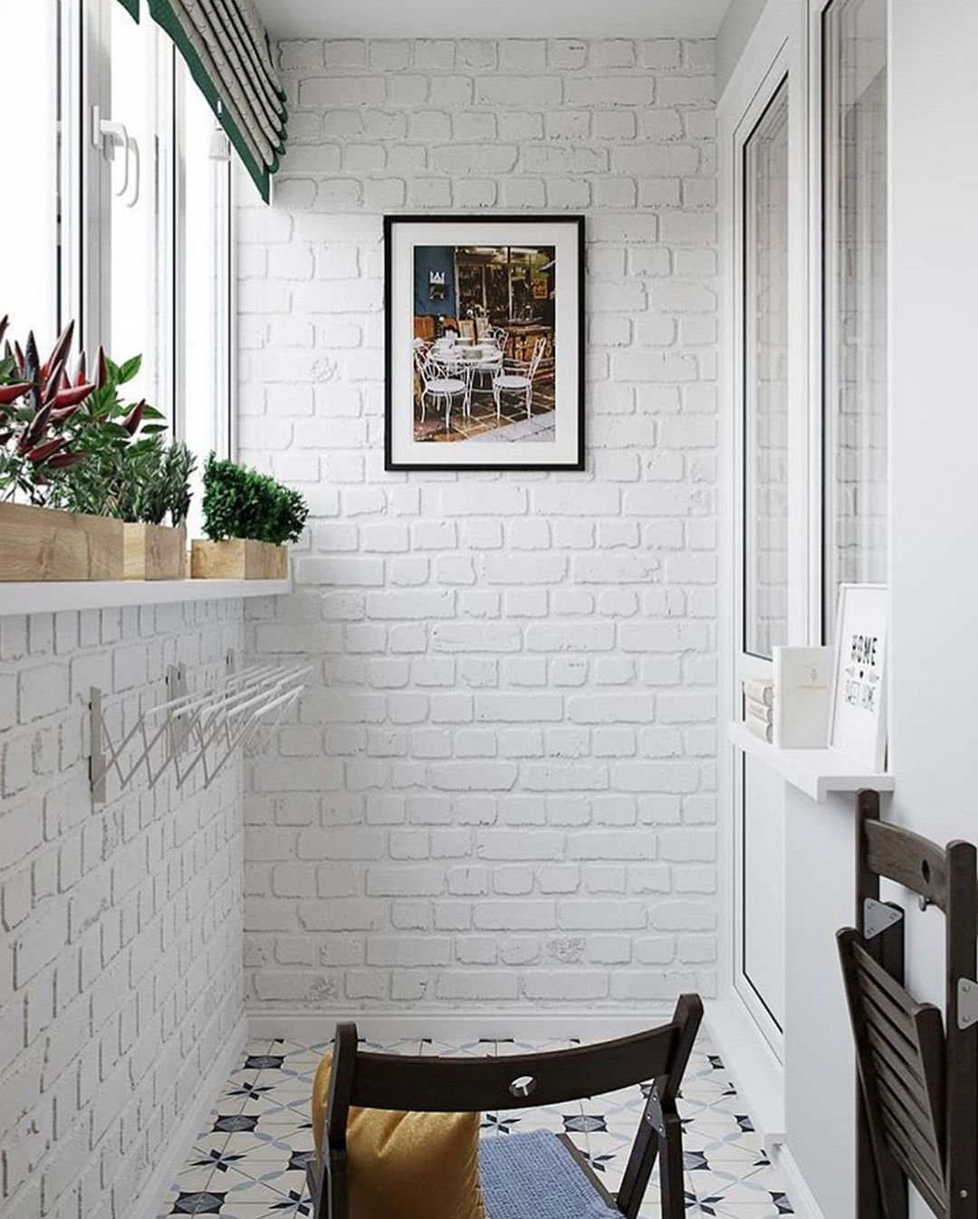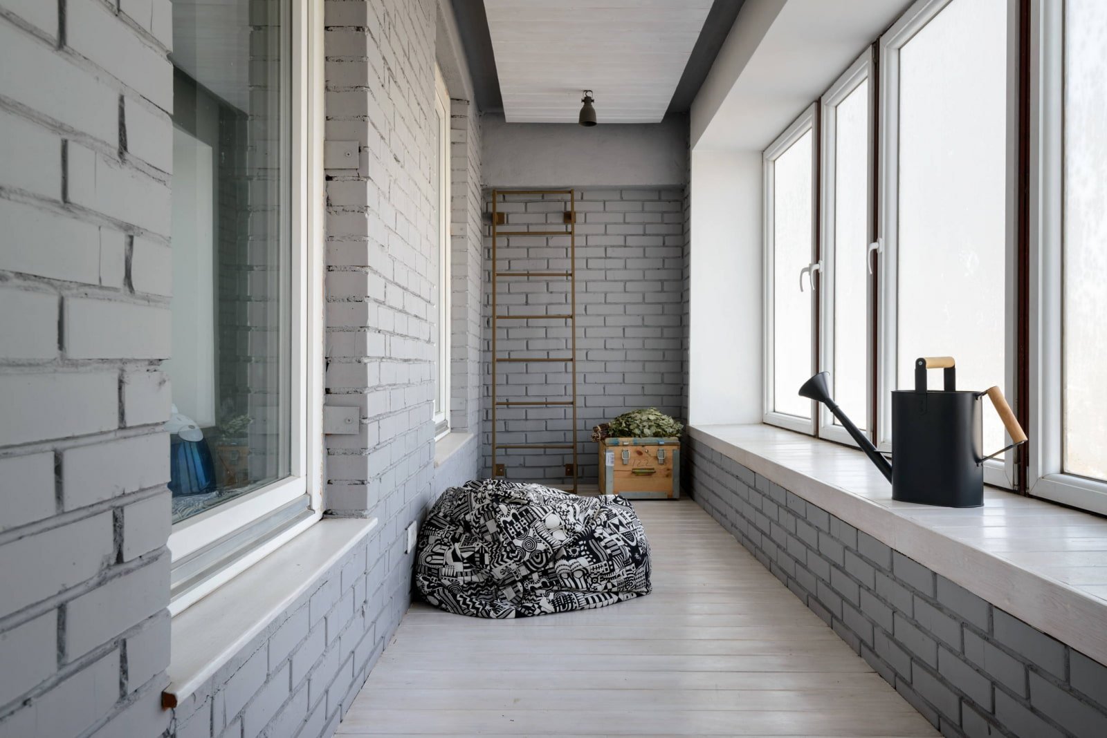 Балкон в стиле лофт белый кирпич