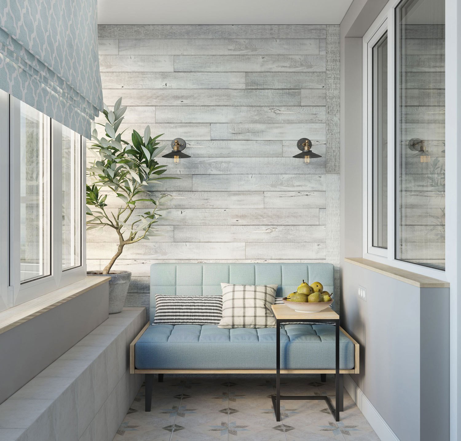 Лоджия стиль лофт и Скандинавия