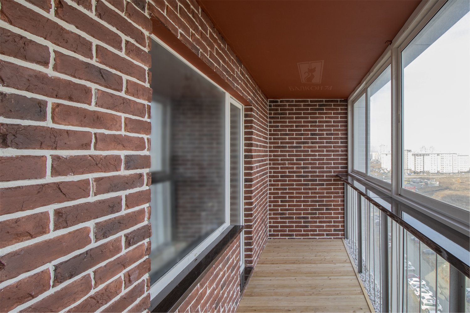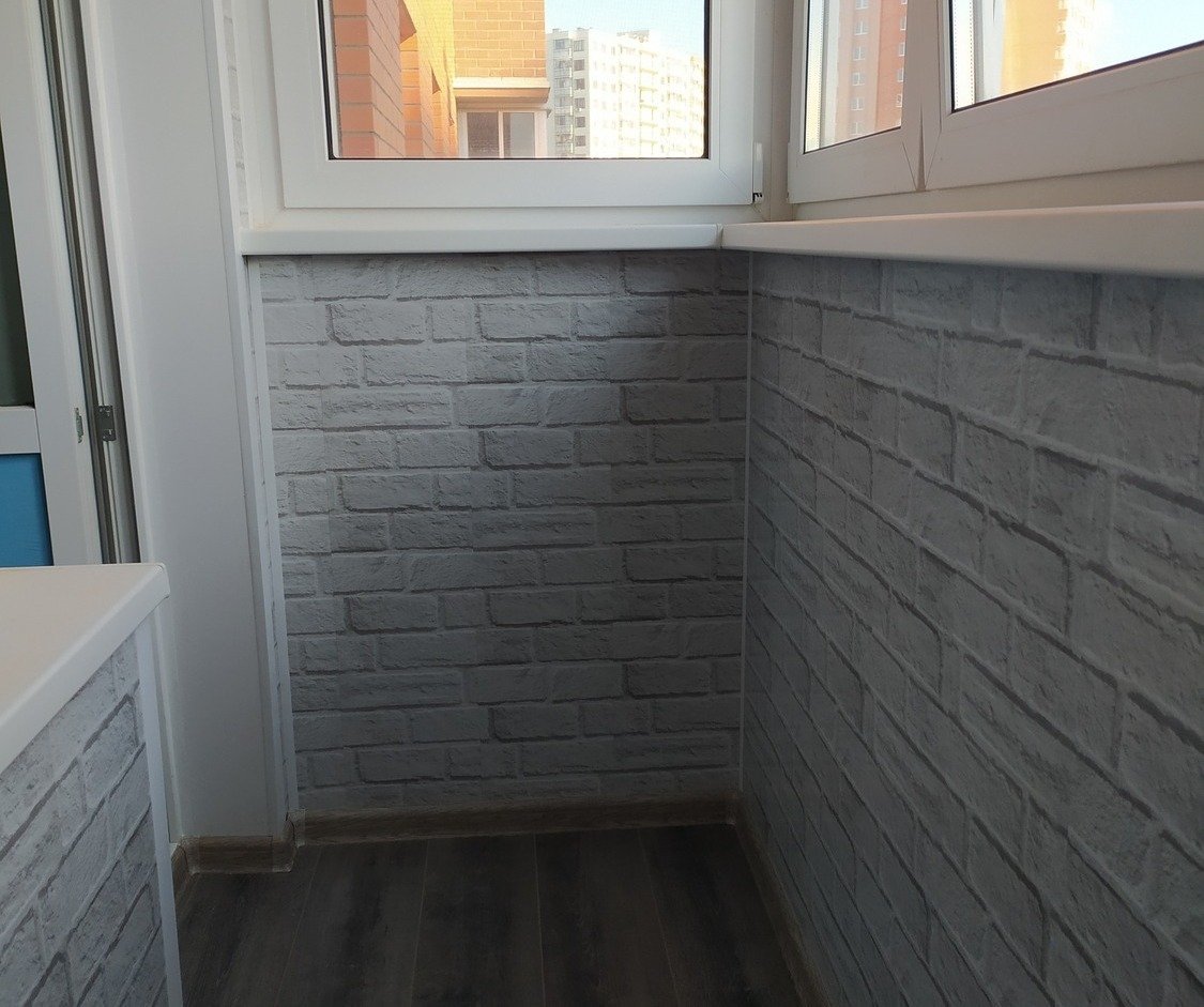 Отделка балкона под кирпич