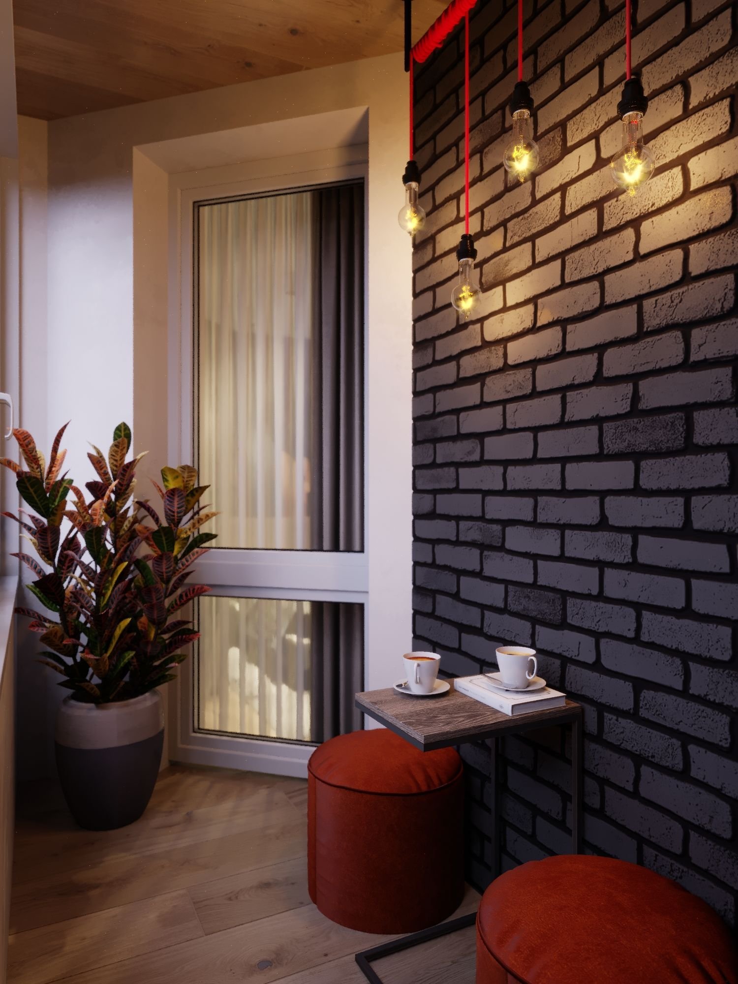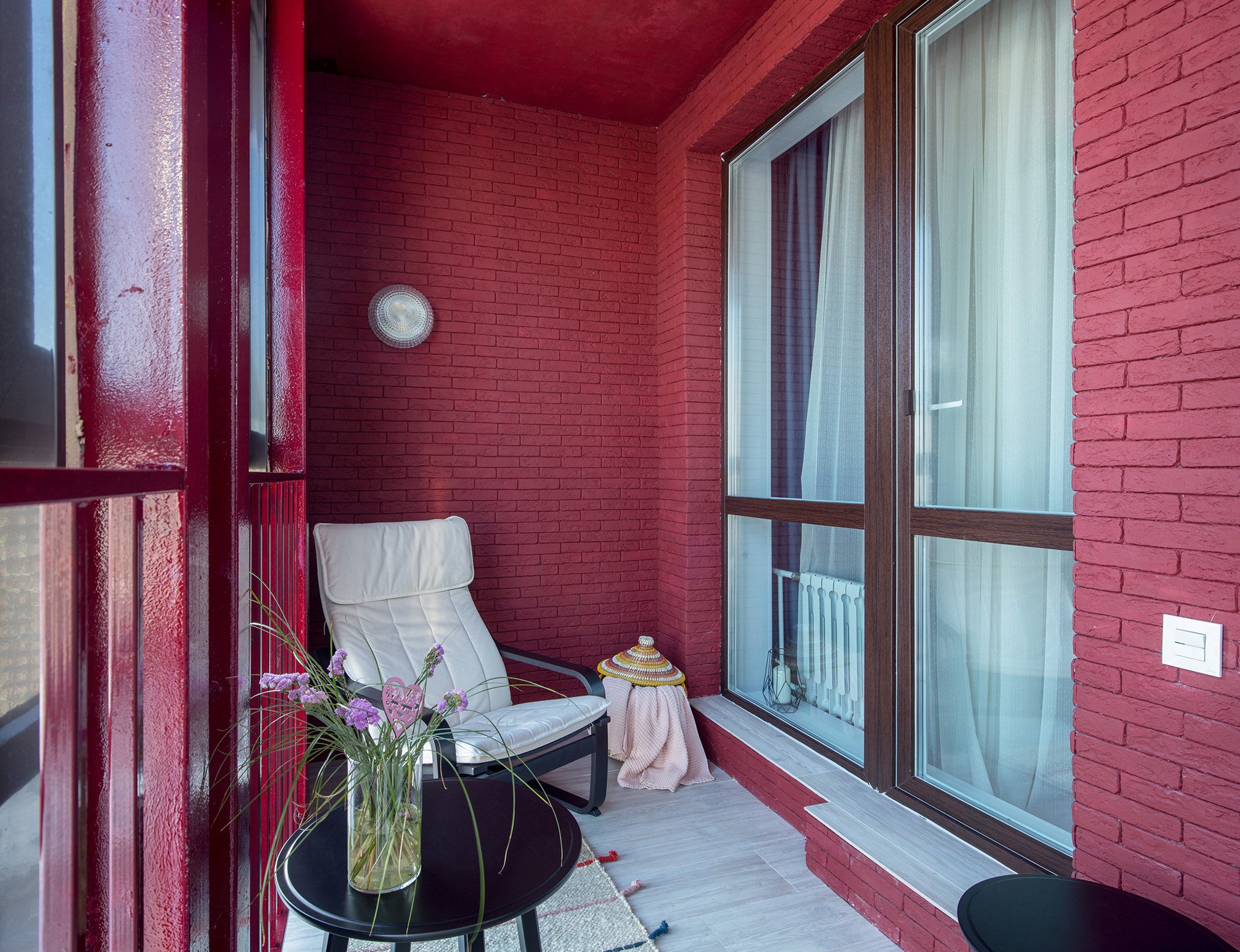 Балкон в стиле лофт красный кирпич
