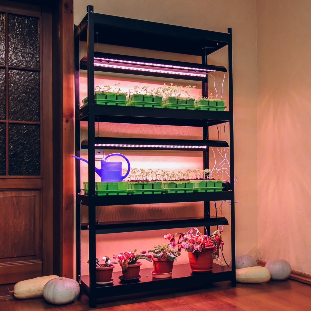 Стеллаж 4 полки для рассады аысота 160 ширина 90с подсветкой
