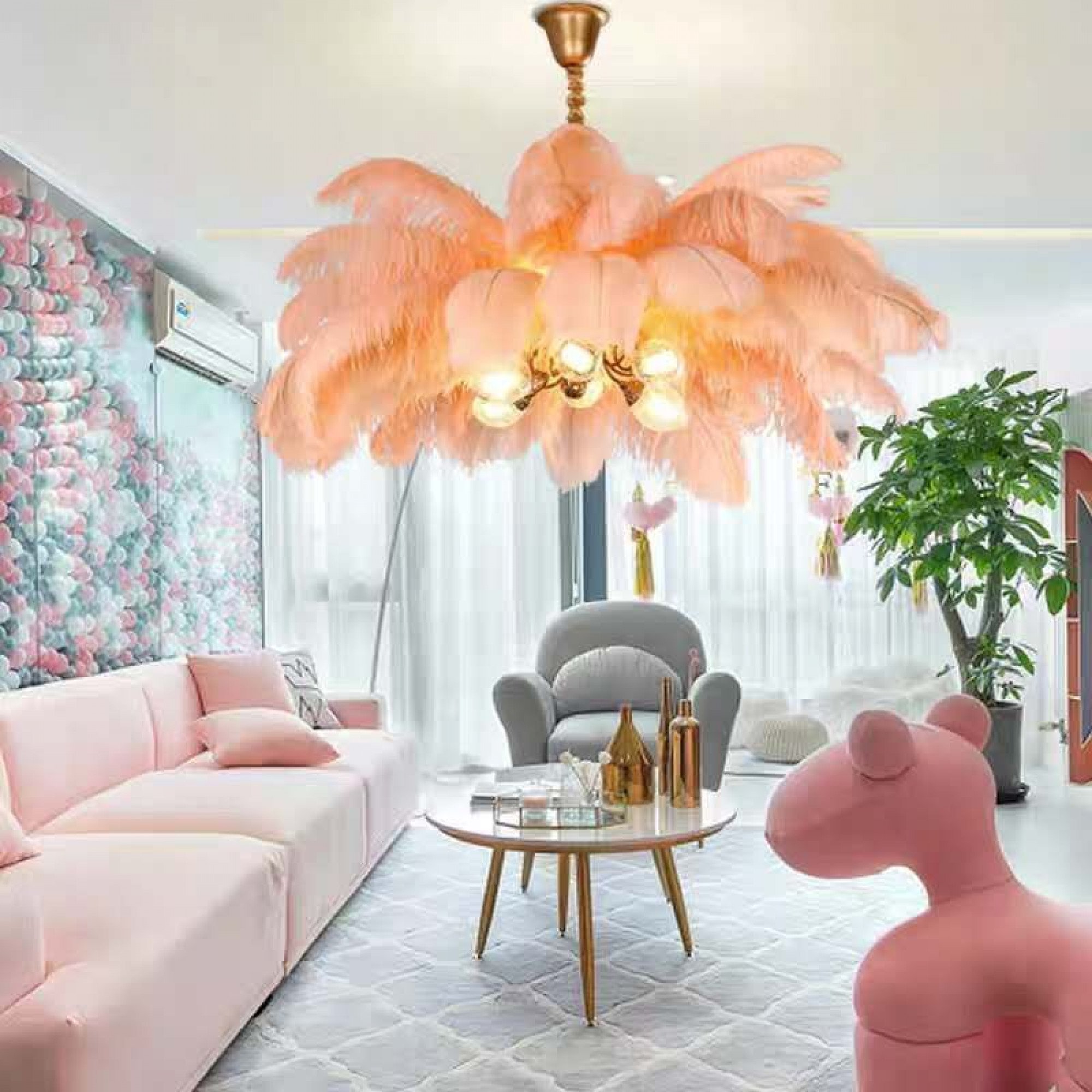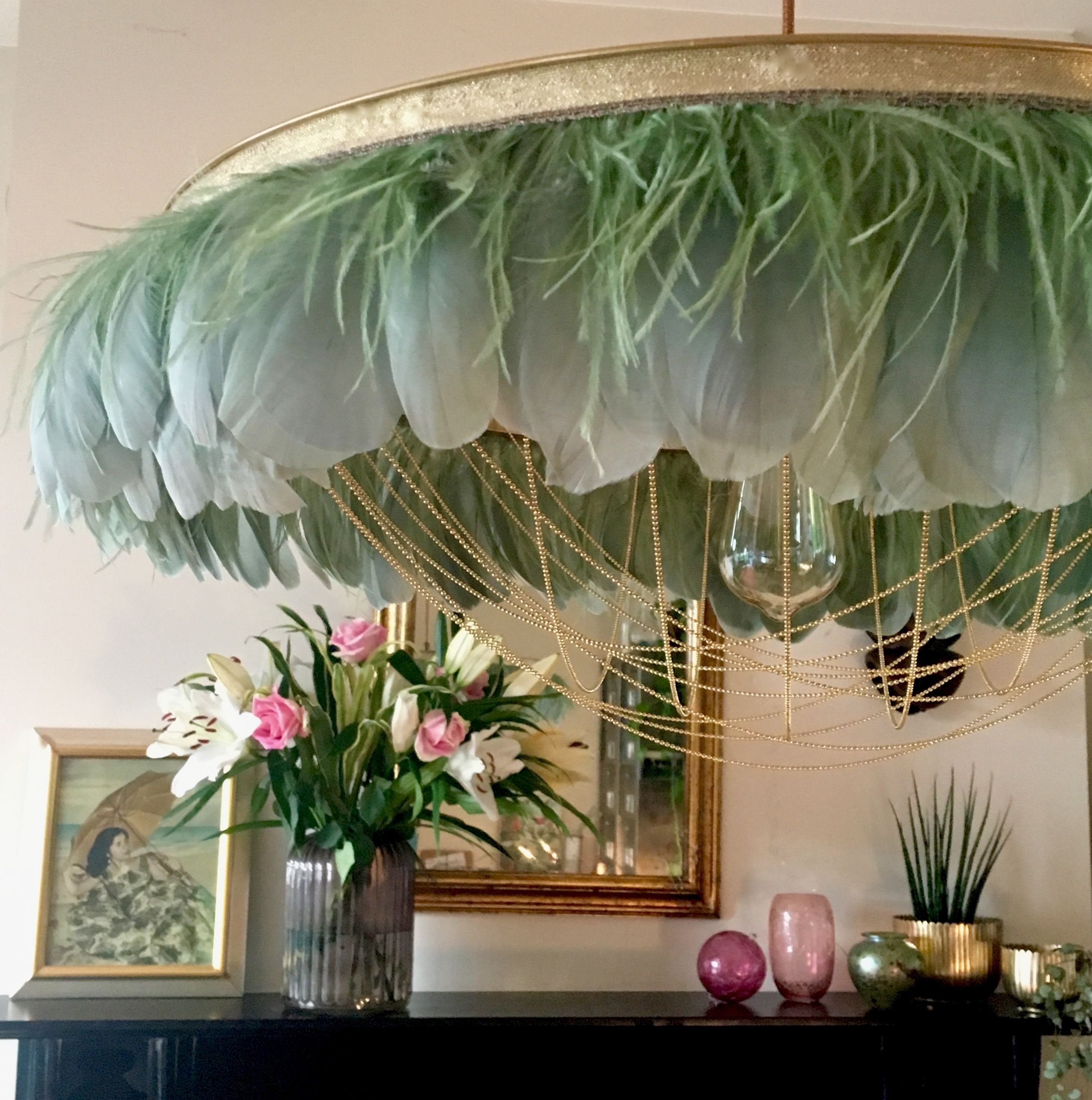 Люстра с перьями в интерьере