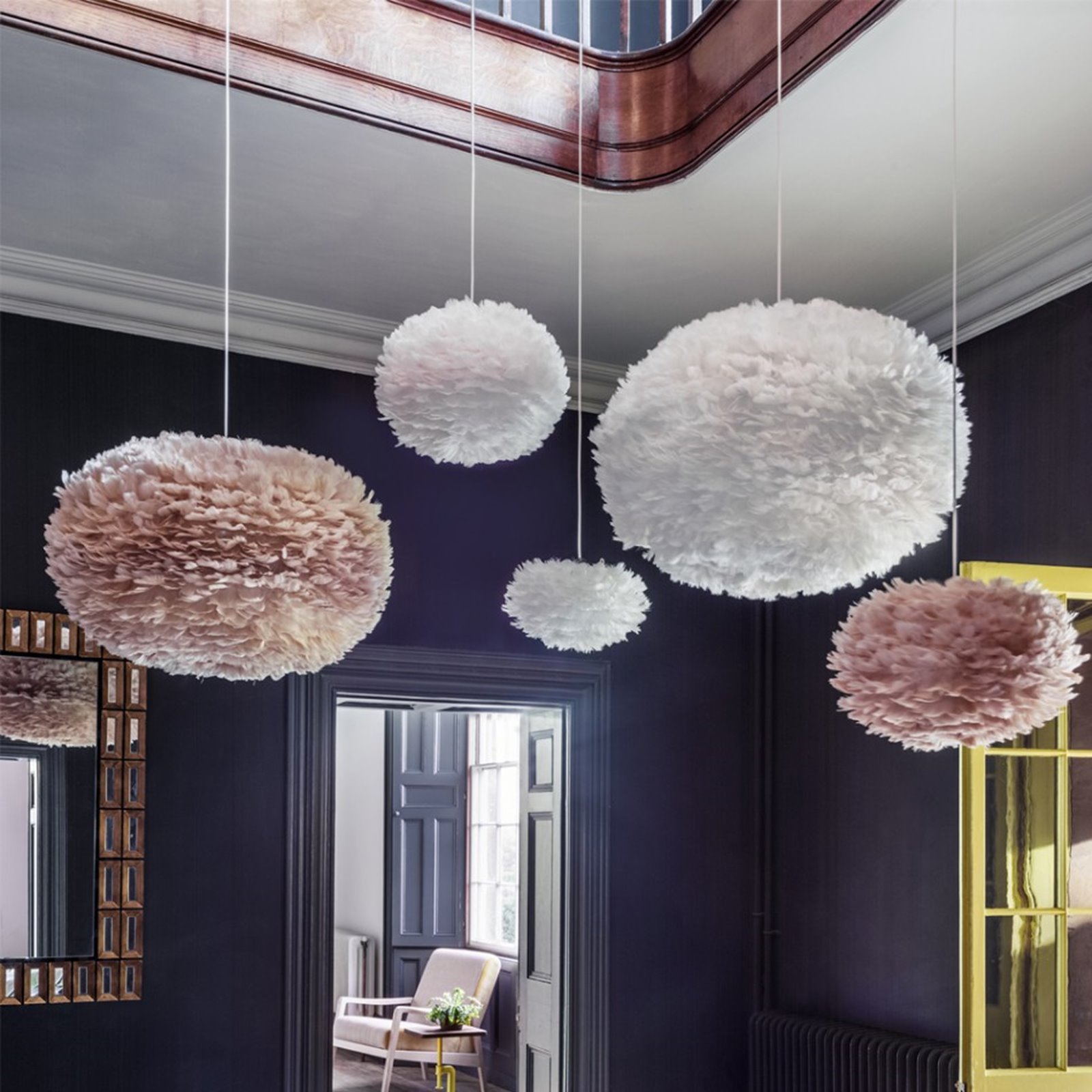 Подвесы перья белые в интерьере