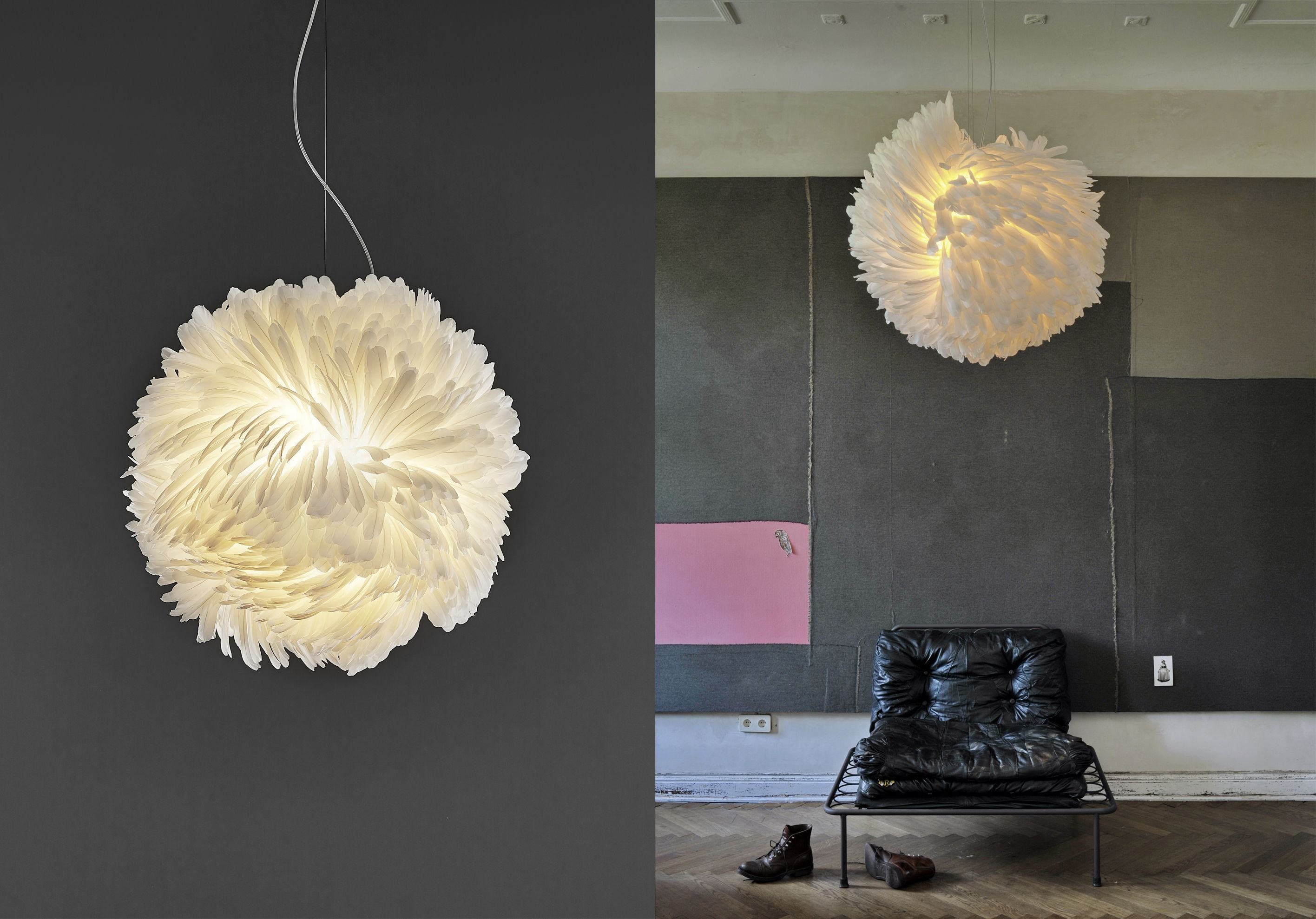 Подвесной светильник с перьями
