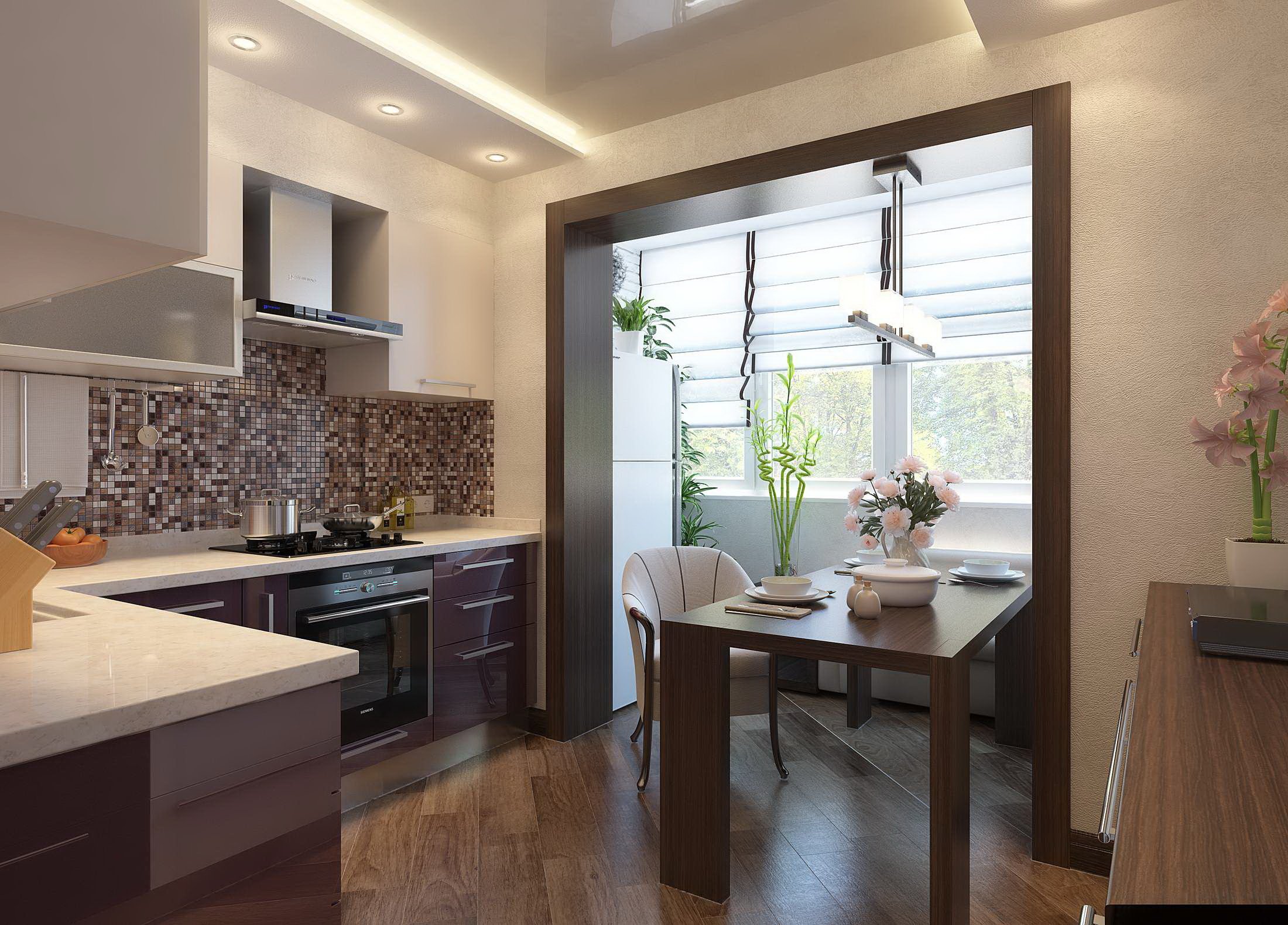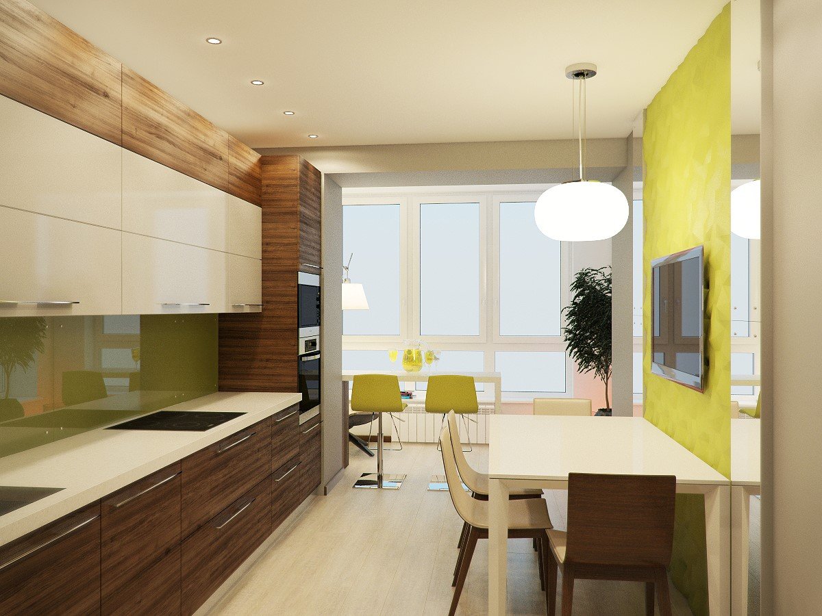 Дизайн кухни соединенной с балконом