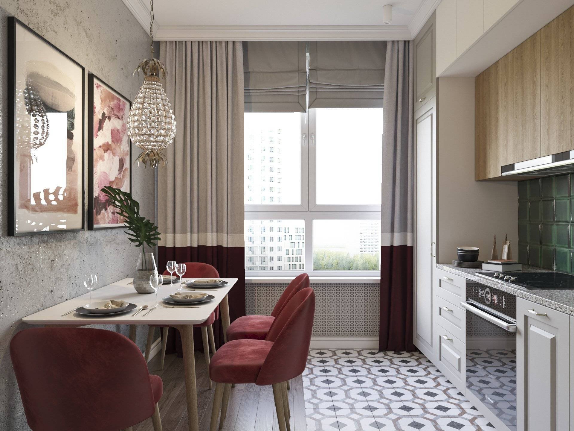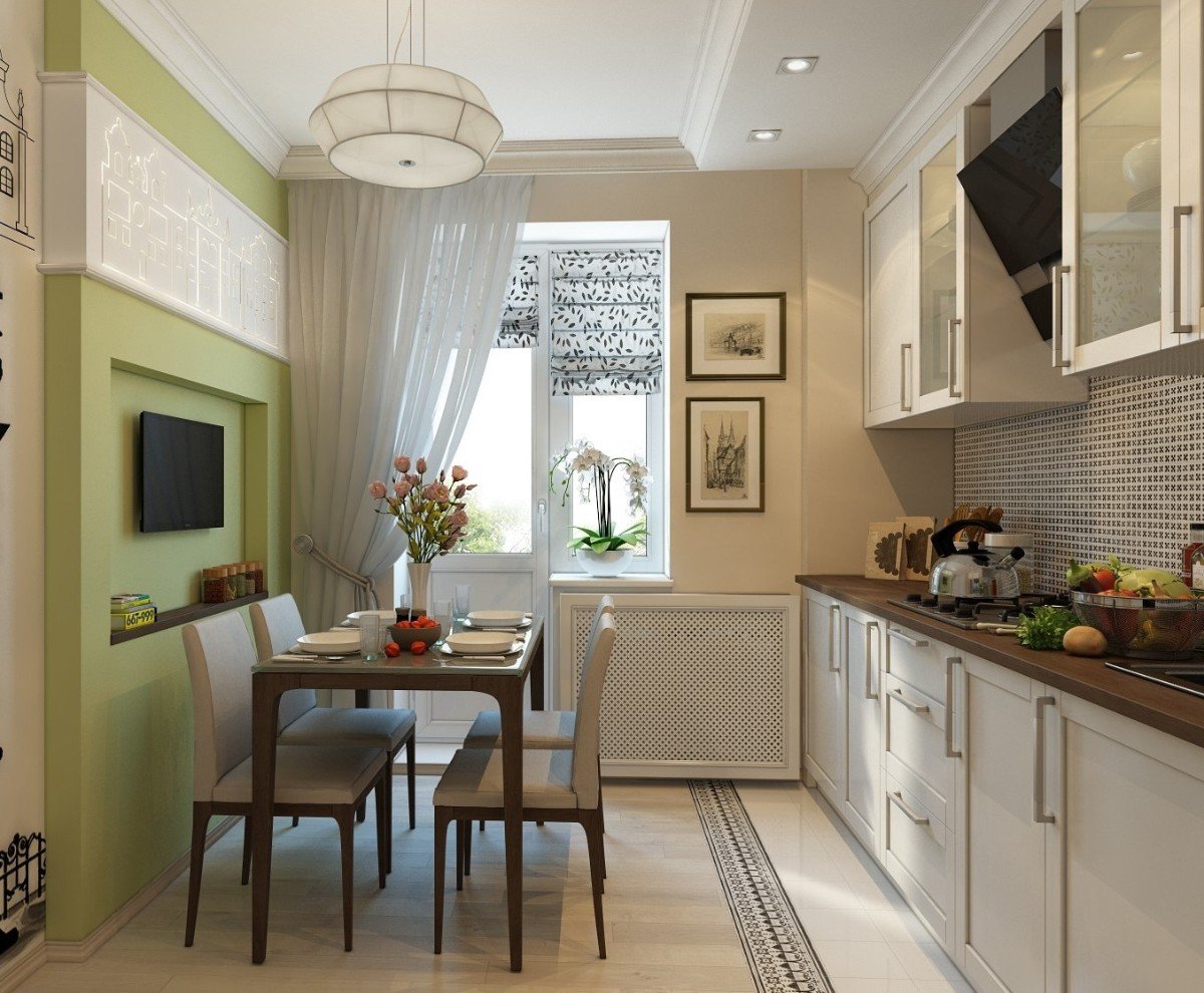 Интерьер кухни 10 кв м квадратная с балконом