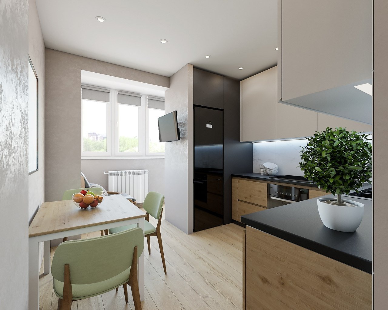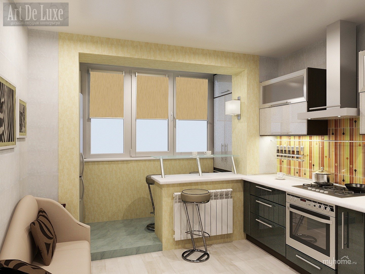 Проект кухни объединенной с балконом
