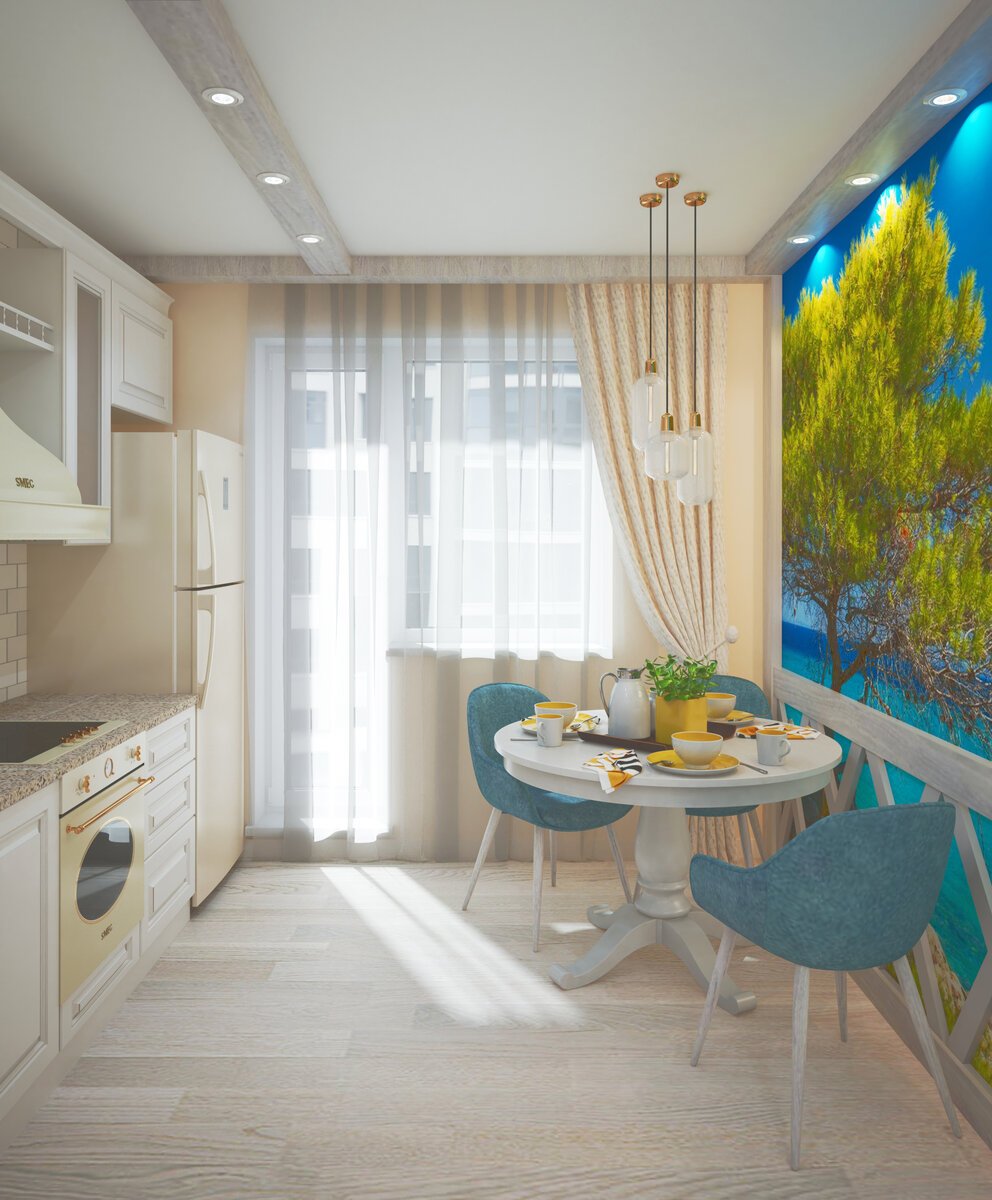 Интерьер кухни 10м2 с балконом